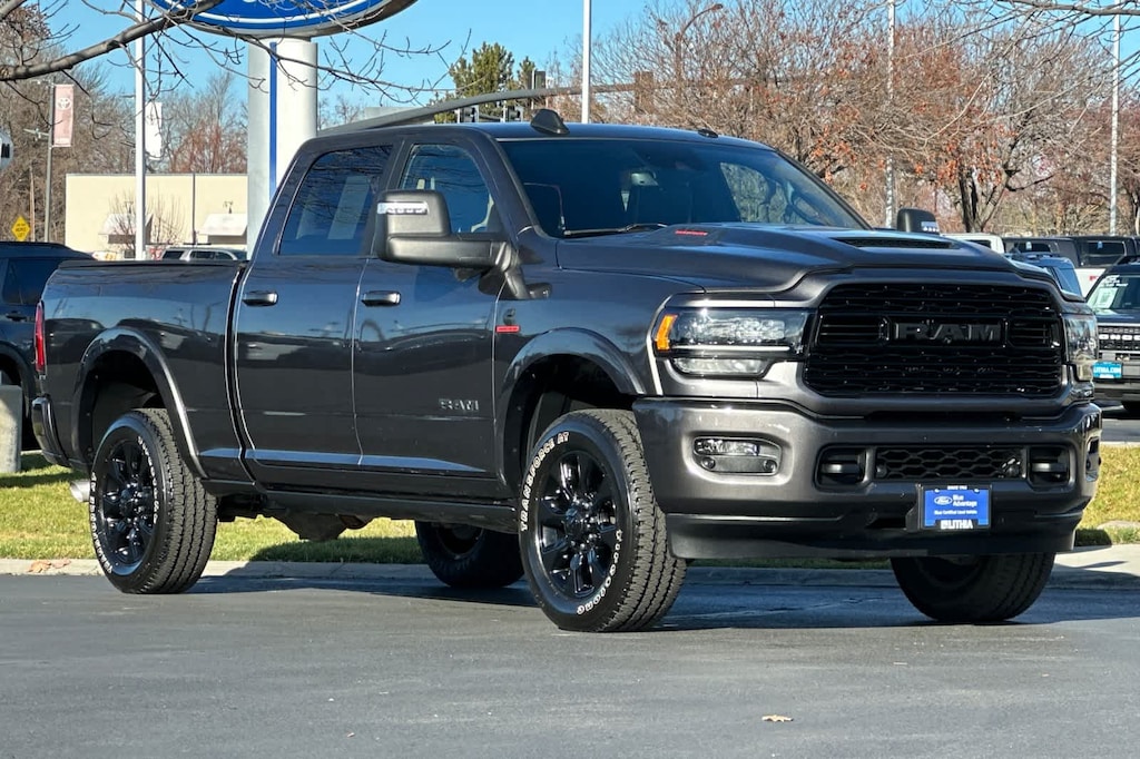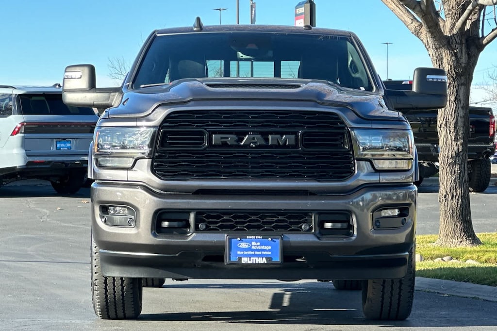 ENGINE: 6.7L I6 CUMMINS TURBO DIESEL Selective Catalytic Reduction (Urea), Dual 730 Amp Maintenance Free Batteries, Cummins Turbo Diesel Badge, Heavy Duty Engine Cooling, Diesel Exhaust Brake, Supplemental Heater, Front Bumper Sight Shields, Capless Fuel Fill w/o Discriminator, 220 Amp Alternator (STD), LIMITED LEVEL 1 EQUIPMENT GROUP CTR Stop Lamp w/Cargo View Camera, Wheels: 20 x 8.0 Satin Carbon w/Chrome Inserts, Surround View Camera System, For Details, Visit DriveUconnect.com, For More Info, Call 800-643-2112, LED Bed Lighting, Power Deployable Running Boards, 12 Touchscreen Display, RamBox Cargo Management System, Adaptive Steering System, Trailer Reverse Guidance, Selectable Tire Fill Alert, Trailer Tow Pages, Ramcharger Wireless Charging Pad, Radio: Uconnect 5 Nav w/12.0 Display, 4 Adjustable Cargo Tie-Down Hooks, Full Speed Forward Collision Warning Plus, MOPAR Spray In Bedliner, 17 Speaker harman/kardon® Premium Sound, Truck Bed Cargo Divider, Adaptive Cruise Control w/Stop, Digital Rearview Mirror, Lane Keep Assist, POWER SUNROOF, ANTI-SPIN DIFFERENTIAL REAR AXLE, TRANSMISSION: 6-SPEED AUTOMATIC (68RFE) Leather Wrapped Shift Control (STD). 2024 Ram 2500 with Granite Crystal Metallic Clearcoat exterior and Black interior features a Straight 6 Cylinder Engine with 370 HP at 2800 RPM*.