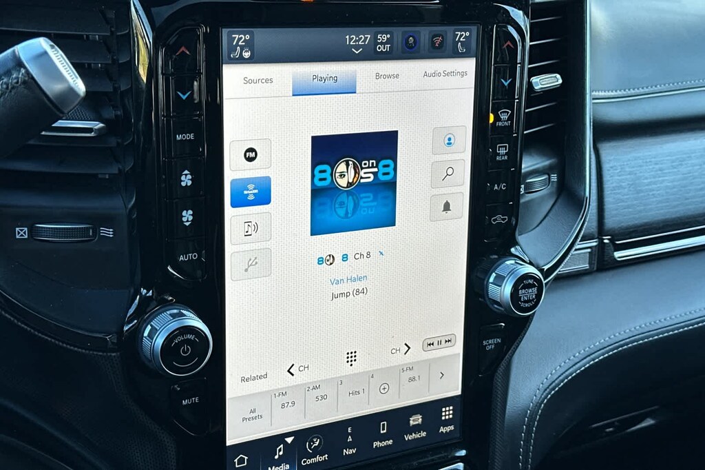 Leather Seats, 4x4, Heated Driver Seat, Heated Rear Seat, Cooled Driver Seat, iPod/MP3 Input, CD Player, Trailer Hitch, Chrome Wheels, Remote Engine Start, Dual Zone A/C, Apple CarPlay®, WiFi Hotspot, Cross-Traffic Alert, Blind Spot Monitor. MP3 Player, Keyless Entry, Privacy Glass, Child Safety Locks, Steering Wheel Controls.