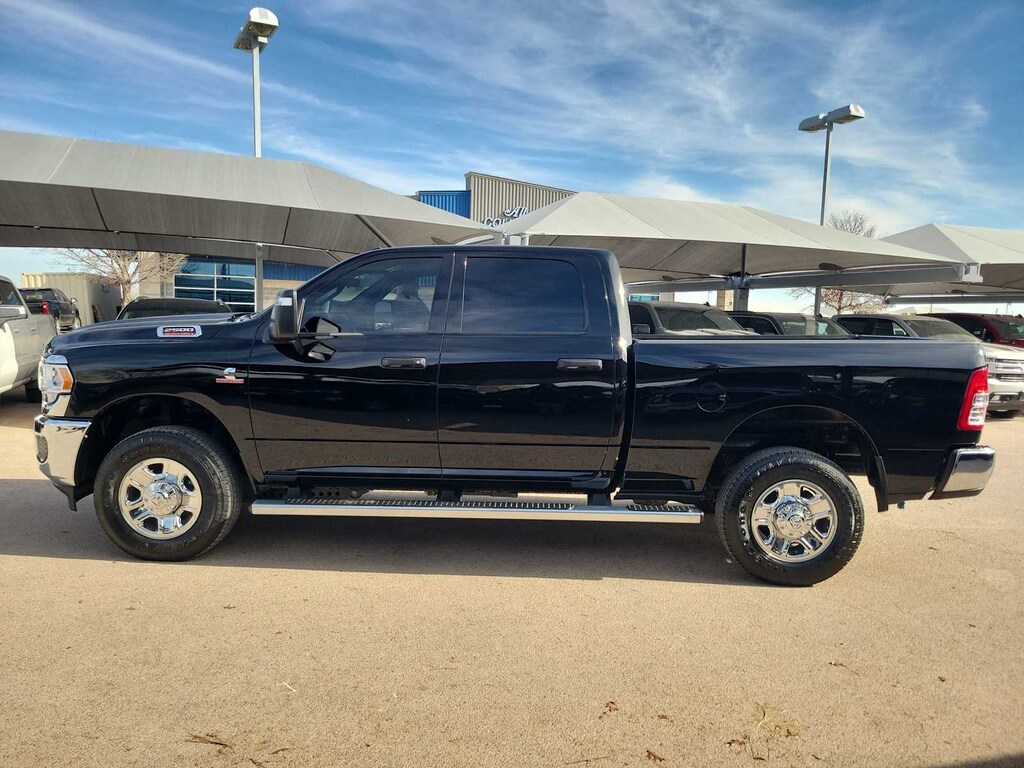 ENGINE: 6.7L I6 CUMMINS TURBO DIESEL Selective Catalytic Reduction (Urea), Dual 730 Amp Maintenance Free Batteries, Cummins Turbo Diesel Badge, Heavy Duty Engine Cooling, Tow Hooks, Diesel Exhaust Brake, Supplemental Heater, Front Bumper Sight Shields, Capless Fuel Fill w/o Discriminator, CHROME APPEARANCE GROUP Bright Rear Bumper, Chrome Grille Surround, Matte Black Mesh Grille w/Chrome, Chrome Headlamp Bezels, 18 Steel Spare Wheel, Wheels: 18 x 8.0 Steel Chrome Clad, Tires: LT275/70R18E BSW AS, Bright Front Bumper, TRADESMAN LEVEL 2 EQUIPMENT GROUP Rear Window Defroster, For More Info, Call 800-643-2112, Rear Power Sliding Window, Front Armrest w/Cupholders, Exterior Mirrors w/Heating Element, Remote USB Port - Charge Only, Manual Adjust 4-Way Front Passenger Seat, Mirror Running Lights, Power Adjustable Convex Aux Mirrors, SiriusXM Satellite Radio, Power Heated Folding Telescope Mirrors, Exterior Mirrors w/Supplemental Signals, Exterior Mirrors Courtesy Lamps, Power Adjust Mirrors, TRANSMISSION: 6-SPEED AUTOMATIC (68RFE) Urethane Shift Control, BLACK, CLOTH 40/20/40 BENCH SEAT. Ram Tradesman with Diamond Black Crystal Pearlcoat exterior and Black interior features a Straight 6 Cylinder Engine with 410 HP at 5600 RPM*.