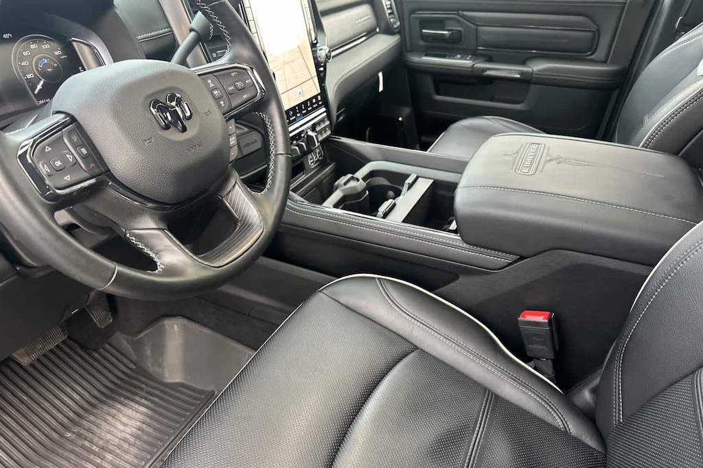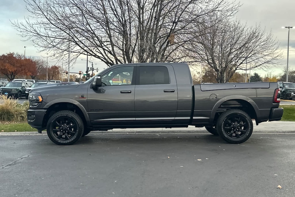 ENGINE: 6.7L I6 CUMMINS TURBO DIESEL Selective Catalytic Reduction (Urea), Dual 730 Amp Maintenance Free Batteries, Cummins Turbo Diesel Badge, Heavy Duty Engine Cooling, Diesel Exhaust Brake, Supplemental Heater, Front Bumper Sight Shields, Capless Fuel Fill w/o Discriminator (STD), LIMITED LEVEL 1 EQUIPMENT GROUP Center Stop Lamp w/Cargo View Camera, Wheels: 20 x 8.0 Satin Carbon w/Chrome Inserts, Surround View Camera System, LED Bed Lighting, Power Deployable Running Boards, 12 Touchscreen Display, RamBox Cargo Management System, Adaptive Steering System, Trailer Reverse Guidance, Ramcharger Wireless Charging Pad, Radio: Uconnect 5 Nav w/12.0 Display, 4 Adjustable Cargo Tie-Down Hooks, Full Speed Forward Collision Warning Plus, MOPAR Spray In Bedliner, 17 Speaker harman/kardon® Premium Sound, Truck Bed Cargo Divider, Adaptive Cruise Control w/Stop, Digital Rearview Mirror, Lane Keep Assist, AUTO LEVEL REAR AIR SUSPENSION, POWER SUNROOF, ANTI-SPIN DIFFERENTIAL REAR AXLE, TRANSMISSION: 6-SPEED AUTOMATIC (68RFE) Leather Wrapped Shift Control (STD). 2024 Ram 2500 with Granite Crystal Metallic Clearcoat exterior and Black interior features a Straight 6 Cylinder Engine with 370 HP at 2800 RPM*.