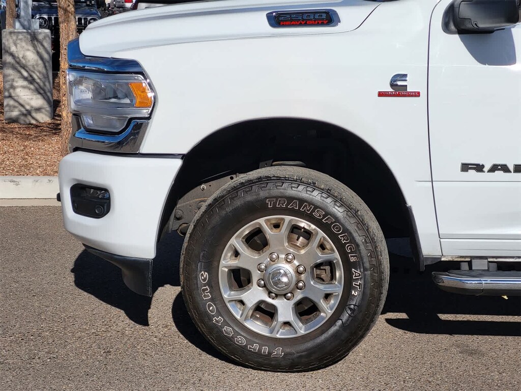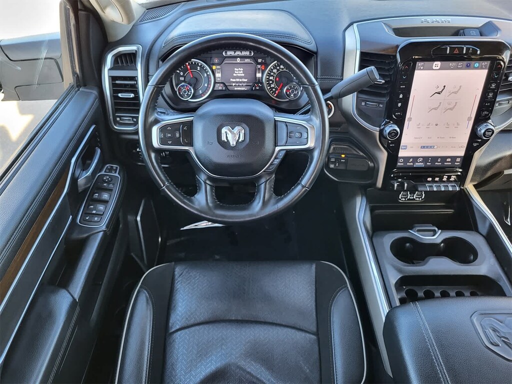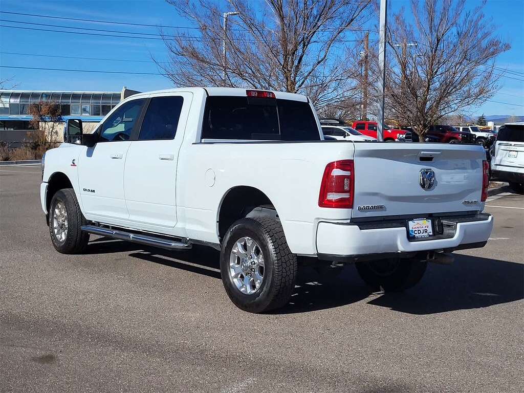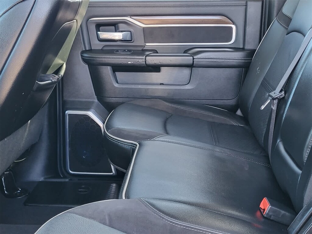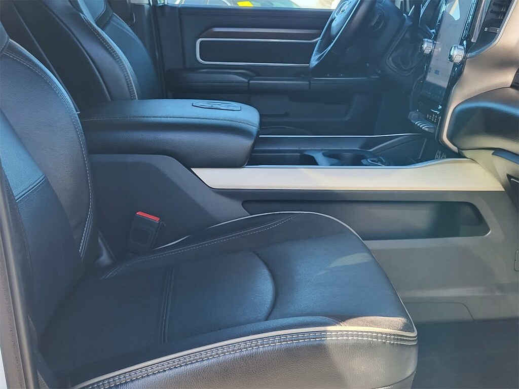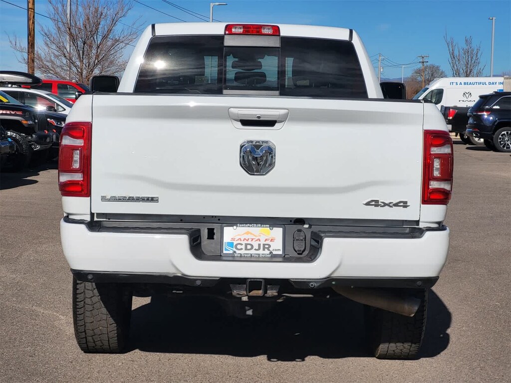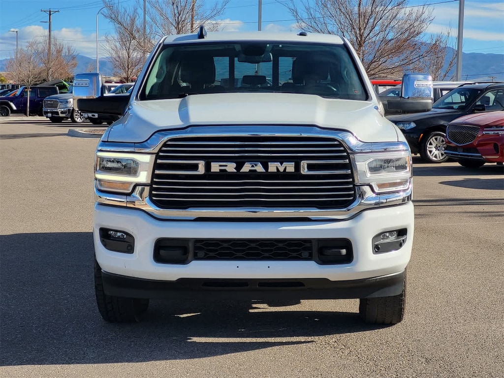 ENGINE: 6.7L I6 CUMMINS TURBO DIESEL Selective Catalytic Reduction (Urea), Dual 730 Amp Maintenance Free Batteries, Cummins Turbo Diesel Badge, Heavy Duty Engine Cooling, Supplemental Heater, 220 Amp Alternator, Tow Hooks, Diesel Exhaust Brake, Front Bumper Sight Shields, Capless Fuel Fill w/o Discriminator, CHROME FLAT CAB-LENGTH SIDE STEPS, MOPAR SPRAY IN BEDLINER, BLACK, LEATHER TRIMMED BUCKET SEATS Bucket Seats, High Back Seats, Folding Flat Load Floor Storage, Full Length Upgraded Floor Console, LARAMIE LEVEL 1 EQUIPMENT GROUP Blind Spot & Cross Path Detection, LED Tail Lamps, Power Adjustable Pedals w/Memory, For Details, Visit DriveUconnect.com, For More Info, Call 800-643-2112, 12 Touchscreen Display, Auto Power-Folding Mirrors, Front LED Fog Lamps, Mirror Running Lights, Alexa Built-In, Power Adjustable Convex Aux Mirrors, Forward & Reverse Utility Lights, Disassociated Touchscreen Display, Remote Tailgate Release, Center Hub, 2nd Row In Floor Storage Bins, Rear Window Defroster, Rain Sensitive Windshield Wipers, Rear Power Sliding Window, GPS Navigation, Auto Dim Exterior Mirror, SiriusXM w/360L, Connected Travel & Traffic Services, LED Reflector Headlamps, Foam Bottle Insert (Door Trim Panel), Off-Road Information Pages, Selectable Tire Fill Alert, Trailer Tow Pages, HD, TRANSMISSION: 6-SPEED AUTOMATIC (68RFE). Ram Laramie with Bright White Clearcoat exterior and Black interior features a Straight 6 Cylinder Engine with 410 HP at 5600 RPM*.