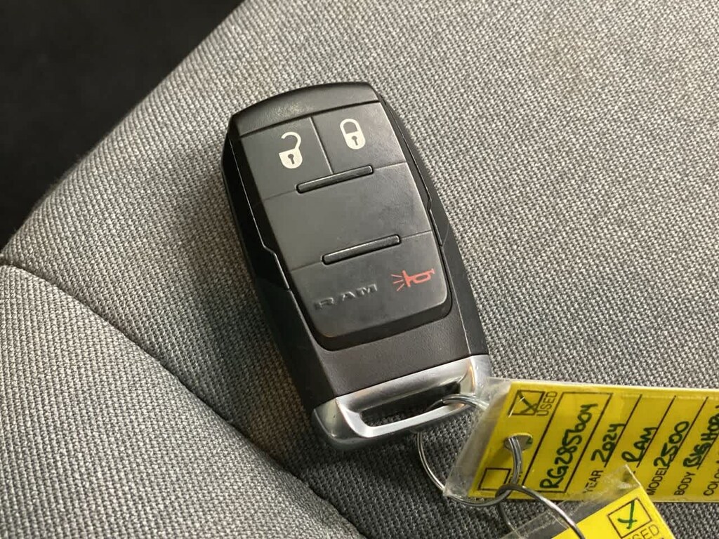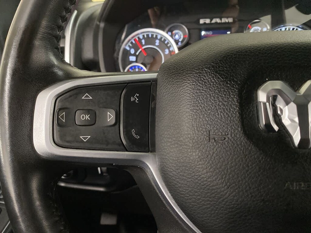 ENGINE: 6.7L I6 CUMMINS TURBO DIESEL Selective Catalytic Reduction (Urea), Dual 730 Amp Maintenance Free Batteries, Cummins Turbo Diesel Badge, Heavy Duty Engine Cooling, Tow Hooks, Diesel Exhaust Brake, Supplemental Heater, Front Bumper Sight Shields, Capless Fuel Fill w/o Discriminator, DIESEL GRAY/BLACK, PREMIUM CLOTH 40/20/40 BENCH SEAT Storage Tray, Rear 60/40 Folding Seat, Front Armrest w/Cupholders, Remote USB Port - Charge Only, Front Center Seat Cushion Storage, Manual Adjust 4-Way Front Passenger Seat, Power Adjust 8-Way Driver Seat, Front Seat Back Map Pockets, Power 2-Way Driver Lumbar Adjust, CHROME FLAT CAB-LENGTH SIDE STEPS, LEVEL 1 EQUIPMENT GROUP Google Android Auto®, For Details, Visit DriveUconnect.com, For More Info, Call 800-643-2112, Leather Wrapped Steering Wheel, Rear Dome w/On/Off Switch Lamp, Front Fog Lamps, Glove Box Lamp, Auto Power-Folding Mirrors, Footwell Courtesy Lamp, 4G LTE Wi-Fi Hot Spot, Mirror Running Lights, Radio: Uconnect 5 W w/8.4 Display, 8.4 Touchscreen Display, Foam Bottle Insert (Door Trim Panel), Wheels: 18 x 8.0 Polished Aluminum, Apple CarPlay®, Big Horn IP Badge, Power Adjustable Convex Aux Mirrors, Forward & Reverse Utility Lights, Locking Lower Glove Box, Selectable Tire Fill Alert, SiriusXM Satellite Radio, Power Heated Fold Telescope Mirrors, Exterior Mirrors w/Supplemental Signals, Steering Wheel Mounted Audio Controls, Exterior Mirrors Courtesy Lamps, Dual Glove, TRANSMISSION: 6-SPEED AUTOMATIC (68RFE). Keyless Entry, Privacy Glass, Child Safety Locks, Electronic Stability Control, Brake Assist.