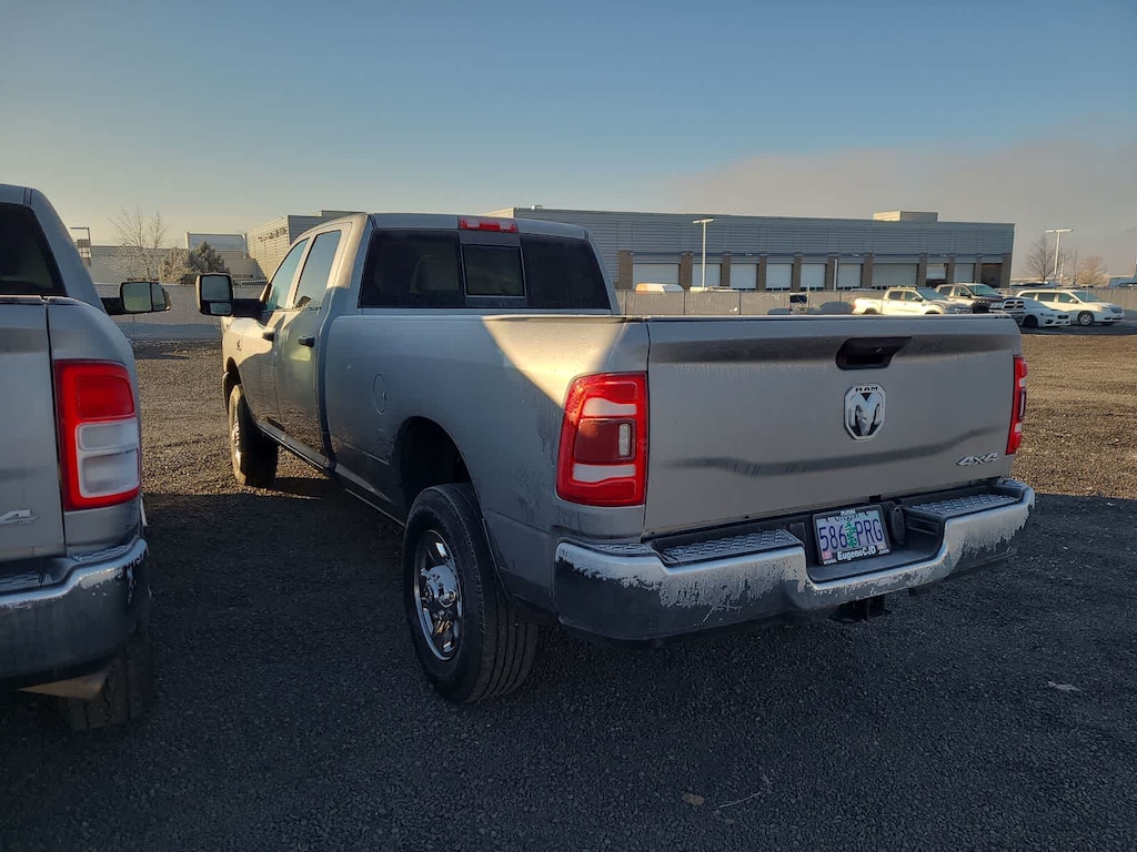 ENGINE: 6.7L I6 CUMMINS TURBO DIESEL Selective Catalytic Reduction (Urea), Dual 730 Amp Maintenance Free Batteries, Cummins Turbo Diesel Badge, Heavy Duty Engine Cooling, Tow Hooks, Diesel Exhaust Brake, Supplemental Heater, Front Bumper Sight Shields, Capless Fuel Fill w/o Discriminator, RADIO: UCONNECT 5 NAV W/12.0 DISPLAY Google Android Auto®, Off-Road Information Pages, Selectable Tire Fill Alert, Trailer Tow Pages, Disassociated Touchscreen Display, HD Radio, For Details, Visit DriveUconnect.com, For More Info, Call 800-643-2112, Connectivity - US/Canada, 12 Touchscreen Display, GPS Navigation, 4G LTE Wi-Fi Hot Spot, SiriusXM w/360L, All Radio Equipped Vehicles, Connected Travel & Traffic Services, All R1 High Radios, Alexa Built-In, Apple CarPlay®, CHROME APPEARANCE GROUP Bright Rear Bumper, Chrome Grille Surround, Matte Black Mesh Grille w/Chrome, Chrome Headlamp Bezels, 18 Steel Spare Wheel, Wheels: 18 x 8.0 Steel Chrome Clad, Tires: LT275/70R18E BSW AS, Bright Front Bumper, BLIND SPOT & CROSS PATH DETECTION LED Tail Lamps, CONVENIENCE GROUP Air Conditioning ATC w/Dual Zone Control, Tinted Acoustic Windshield Glass, Rear View Auto Dim Mirror, PARKSENSE REAR PARK ASSIST SYSTEM, POWER HEATED FOLD TELESCOPE MIRRORS Exterior Mirrors w/Heating Element, Forward & Reverse Utility Lights, Mirror Running Lights, Exterior Mirrors w/Supplemental Signals, Power Adjust Mirrors, Exterior Mirrors Courtesy Lamps, Power Telescoping Mirrors, Auto Power-Folding Mirrors, Power Adjustable Convex Aux Mirrors, TRADESMAN LEVEL 2 EQUIPMENT GROUP Rear Window Defroster, For More Info, Call 800-643-2112, Rear Power Sliding Window, Front Armrest w/Cupholders, Exterior Mirrors w/Heating Element, Remote USB Port - Charge Only, Manual Adjust 4-Way Front Passenger Seat, Mirror Running Lights, Power Adjustable Convex Aux Mirrors, SiriusXM Satellite Radio, Power Heated Folding Telescope Mirrors, Exterior Mirrors w/Supplemental Signals, Exterior Mirrors Courtesy Lamps, Power Adjust Mirrors, TRANSMISSION: 6-SPEED AUTOMATIC (68RFE) Urethane Shift Control, BLACK, CLOTH 40/20/40 BENCH SEAT. Ram Tradesman with Billet Silver Metallic Clearcoat exterior and Black interior features a Straight 6 Cylinder Engine with 410 HP at 5600 RPM*.