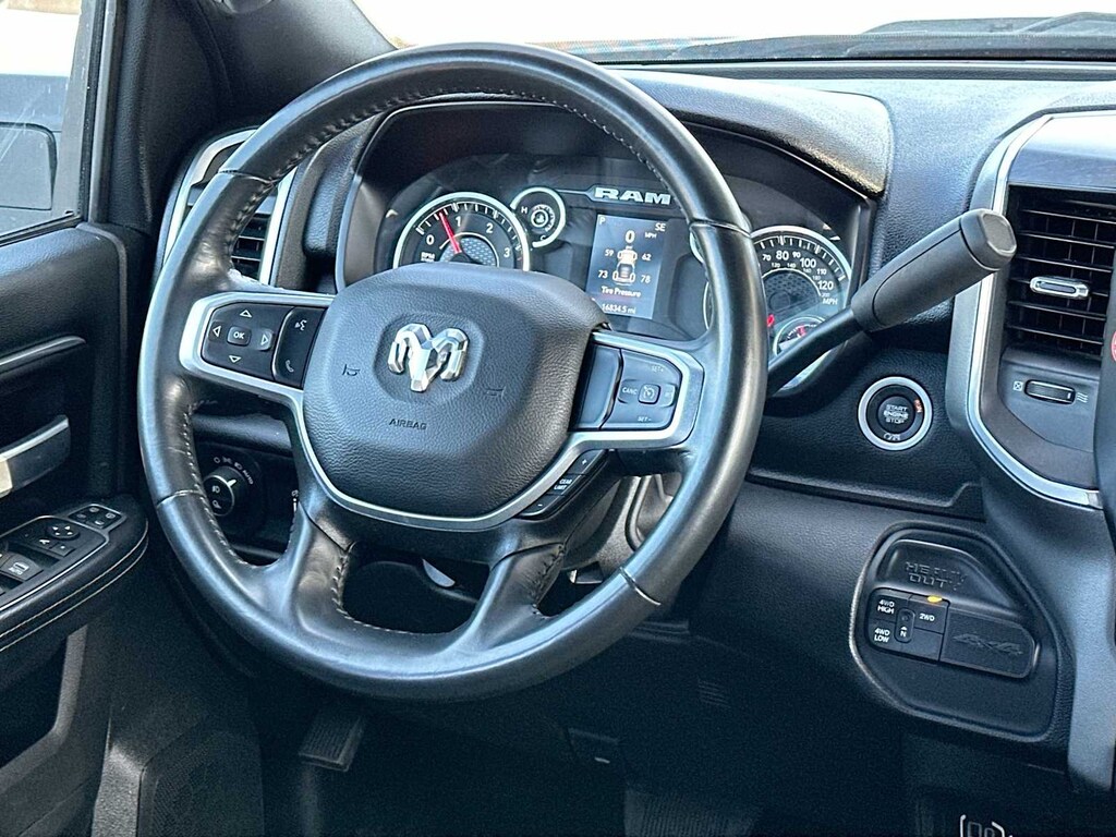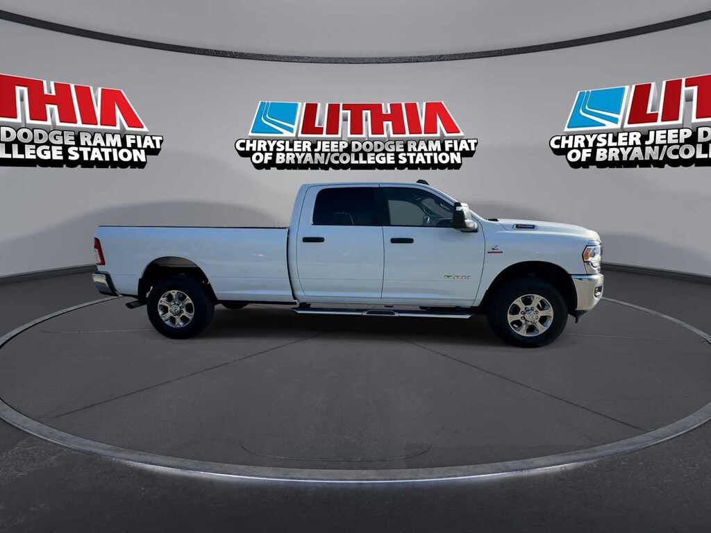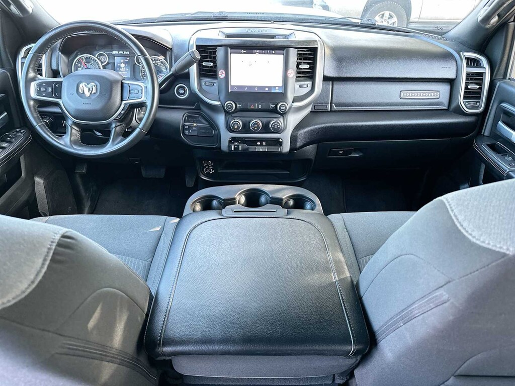 ENGINE: 6.7L I6 CUMMINS TURBO DIESEL Selective Catalytic Reduction (Urea), Dual 730 Amp Maintenance Free Batteries, Cummins Turbo Diesel Badge, Heavy Duty Engine Cooling, Current Generation Engine Controller, Diesel Exhaust Brake, Supplemental Heater, Capless Fuel Fill w/o Discriminator, GVWR: 12,300 lbs, RADIO: UCONNECT 5 W/8.4 DISPLAY Google Android Auto®, SiriusXM Radio Service, Selectable Tire Fill Alert, SiriusXM Satellite Radio, Integrated Center Stack Radio, For More Info, Call 800-643-2112, Connectivity - US/Canada, 4G LTE Wi-Fi Hot Spot, All Radio Equipped Vehicles, All R1 Low Radios, 8.4 Touchscreen Display, Apple CarPlay®, CHROME FLAT CAB-LENGTH SIDE STEPS, LEVEL 1 EQUIPMENT GROUP Leather Wrapped Steering Wheel, Rear Dome w/On/Off Switch Lamp, Front Fog Lamps, Glove Box Lamp, Auto Power-Folding Mirrors, Footwell Courtesy Lamp, Mirror Running Lights, Radio: Uconnect 5 w/8.4 Display, Foam Bottle Insert (Door Trim Panel), Wheels: 18 x 8.0 Polished Aluminum, Big Horn IP Badge, Forward & Reverse Utility Lights, Locking Lower Glove Box, Power Heated Fold Telescopic Mirrors, Steering Wheel Mounted Audio Controls, Dual Glove Boxes, 2nd Row In Floor Storage Bins, Power Telescoping Mirrors, TRANSMISSION: 6-SPEED AUTOMATIC 68RFE Urethane Shift Control, DIESEL GRAY/BLACK, PREMIUM CLOTH 40/20/40 BENCH SEAT Rear 60/40 Folding Seat, Front Center Seat Cushion Storage, Power Adjust 8-Way Driver Seat, Front Seat Back Map Pockets, Power 2-Way Driver Lumbar Adjust. Ram Big Horn with Bright White Clearcoat exterior and Diesel Gray/Black interior features a Straight 6 Cylinder Engine with 410 HP at 5600 RPM*.