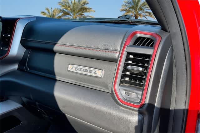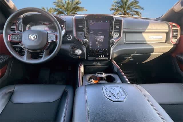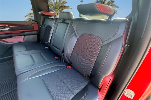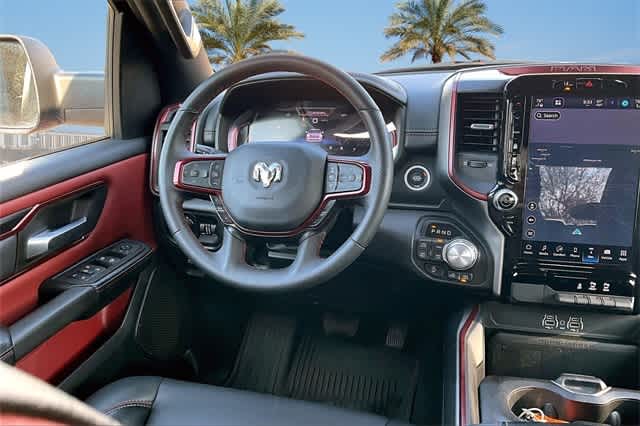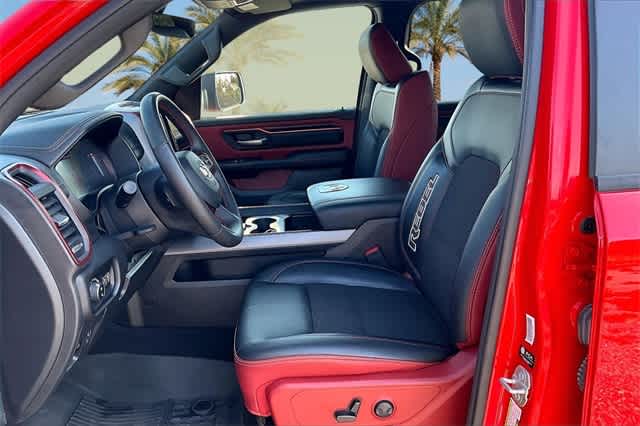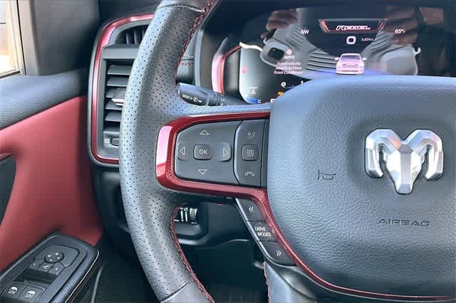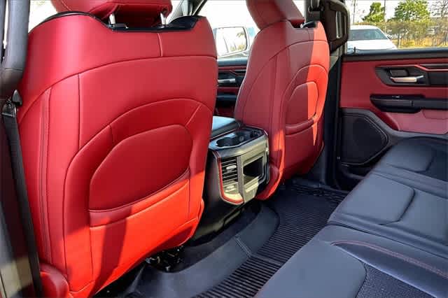 FRESH OIL CHANGE, 10 Speakers, 3.92 Rear Axle Ratio, 4 Way Front Headrests, 4-Wheel Disc Brakes, 4G LTE Wi-Fi Hot Spot, ABS brakes, Air Conditioning, Alloy wheels, AM/FM radio: SiriusXM with 360L, Apple CarPlay, Apple CarPlay/Android Auto, Auto High-beam Headlights, Auto Power-Folding Mirrors, Auto-Dimming Exterior Driver Mirror, Auto-dimming Rear-View mirror, Automatic temperature control, Black Premium Power Mirrors, Brake assist, Bucket Seats, Cloth/Vinyl Bucket Seats, Compass, Connected Travel & Traffic Services, Connectivity - US/Canada, Convex Wide-Angle Exterior Mirror Insert, Delay-off headlights, Driver door bin, Driver vanity mirror, Dual front impact airbags, Dual front side impact airbags, Electronic Stability Control, Exterior Mirrors Courtesy Lamps, Exterior Mirrors w/Heating Element, Exterior Mirrors w/Supplemental Signals, Front anti-roll bar, Front Bucket Seats, Front Center Armrest w/Storage, Front dual zone A/C, Front fog lights, Front License Plate Bracket, Front reading lights, Front Seat Back Map Pockets, Front wheel independent suspension, Full Length Upgraded Floor Console, Fully automatic headlights, Garage door transmitter, Google Android Auto, GPS Antenna Input, GPS Navigation, Heated door mirrors, Heated front seats, Heated steering wheel, Illuminated entry, Integrated Voice Command w/Bluetooth, Leather steering wheel, Low tire pressure warning, Manual Folding Exterior Mirrors, Manufacturers Statement of Origin, Navigation System, Occupant sensing airbag, Outside temperature display, Overhead airbag, Overhead console, Panic alarm, ParkView Rear Back-Up Camera, Passenger door bin, Passenger vanity mirror, Power Adjust 8-Way Driver Seat, Power Adjustable Pedals, Power door mirrors, Power driver seat, Power steering, Power windows, Quick Order Package 21W Rebel, Radio data system, Radio: Uconnect 5 Nav w/12.0 Display, Rear 60/40 Folding Seat, Rear anti-roll bar, Rear seat center armrest, Rear step bumper, Rear Window Defroster, Rebel Level 1 Equipment Group, Remote keyless entry, Remote Tailgate Release, SiriusXM w/360L, Speed control, Split folding rear seat, Steering wheel mounted audio controls, Tachometer, Telescoping steering wheel, Tilt steering wheel, Traction control, Trip computer, USB Host Flip, Variably intermittent wipers, Voltmeter, Wheels: 18 x 8.0 Painted Mid-Gloss Black, Wireless Charging Pad. Odometer is 6717 miles below market average! Flame Red Clearcoat 2025 Ram 1500 Rebel 4WD 8-Speed Automatic 3.0L I6