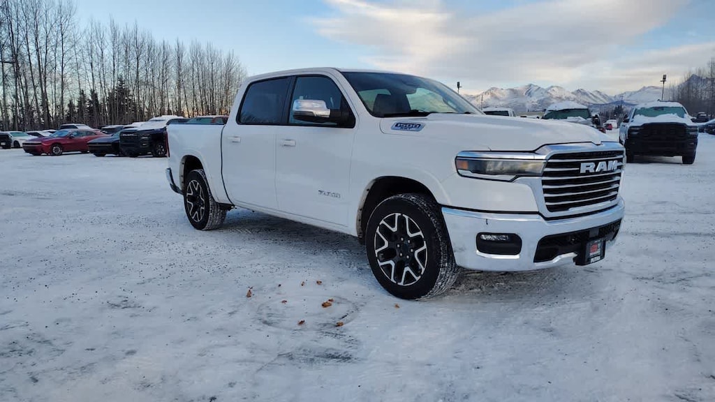 BLACK, LEATHER TRIMMED BUCKET SEATS Bucket Seats, Rear 60/40 Folding Split Recline Seat, #1 Seat Foam Cushion, Center Console Parts Module, Heated Second Row Seats, Power Adjust 8-Way Driver Seat, Full Length Upgraded Floor Console, LARAMIE LEVEL 1 EQUIPMENT GROUP Remote Tailgate Release, Rain Sensitive Windshield Wipers, TRANSMISSION: 8-SPEED AUTOMATIC (8HP75) (STD), ENGINE: 3.0L I6 HURRICANE SO TWIN TURBO ESS (STD). Ram Laramie with Bright White Clearcoat exterior and Black interior features a Straight 6 Cylinder Engine with 420 HP at 5200 RPM*.