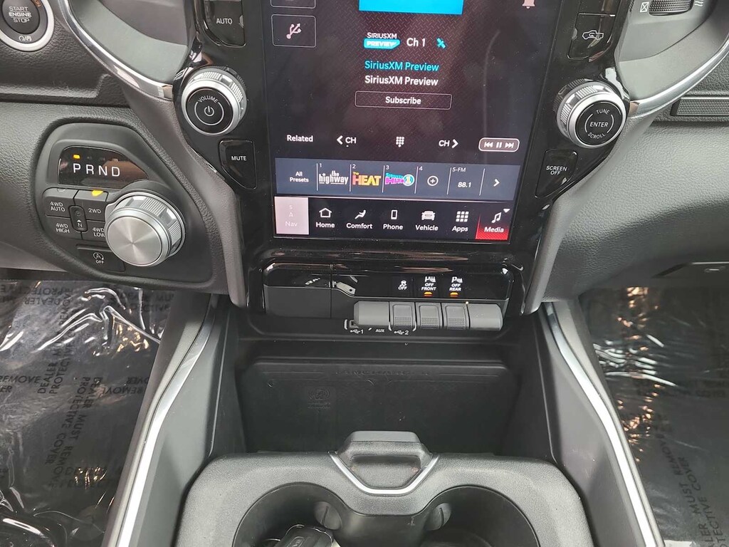 BLACK, LEATHER TRIMMED BUCKET SEATS Bucket Seats, Rear 60/40 Folding Split Recline Seat, #1 Seat Foam Cushion, Center Console Parts Module, Heated Second Row Seats, Power Adjust 8-Way Driver Seat, Full Length Upgraded Floor Console, LARAMIE LEVEL 1 EQUIPMENT GROUP Remote Tailgate Release, Rain Sensitive Windshield Wipers, TRANSMISSION: 8-SPEED AUTOMATIC (8HP75) (STD), ENGINE: 3.0L I6 HURRICANE SO TWIN TURBO ESS (STD). MP3 Player, Privacy Glass. Serviced here, Non-Smoker vehicle, Carfax one owner