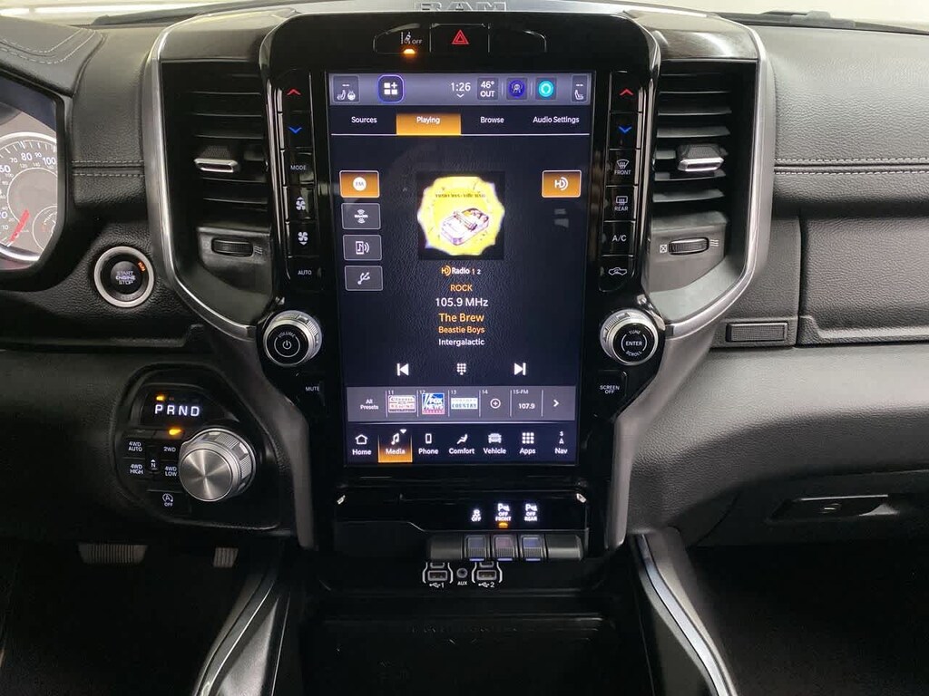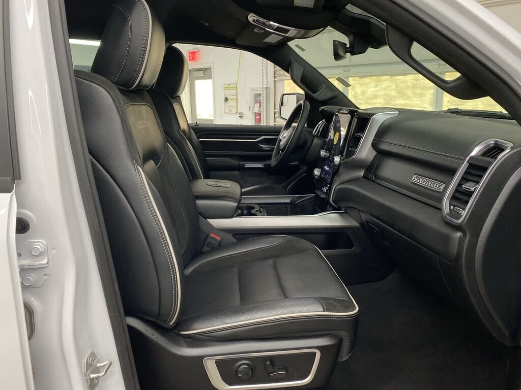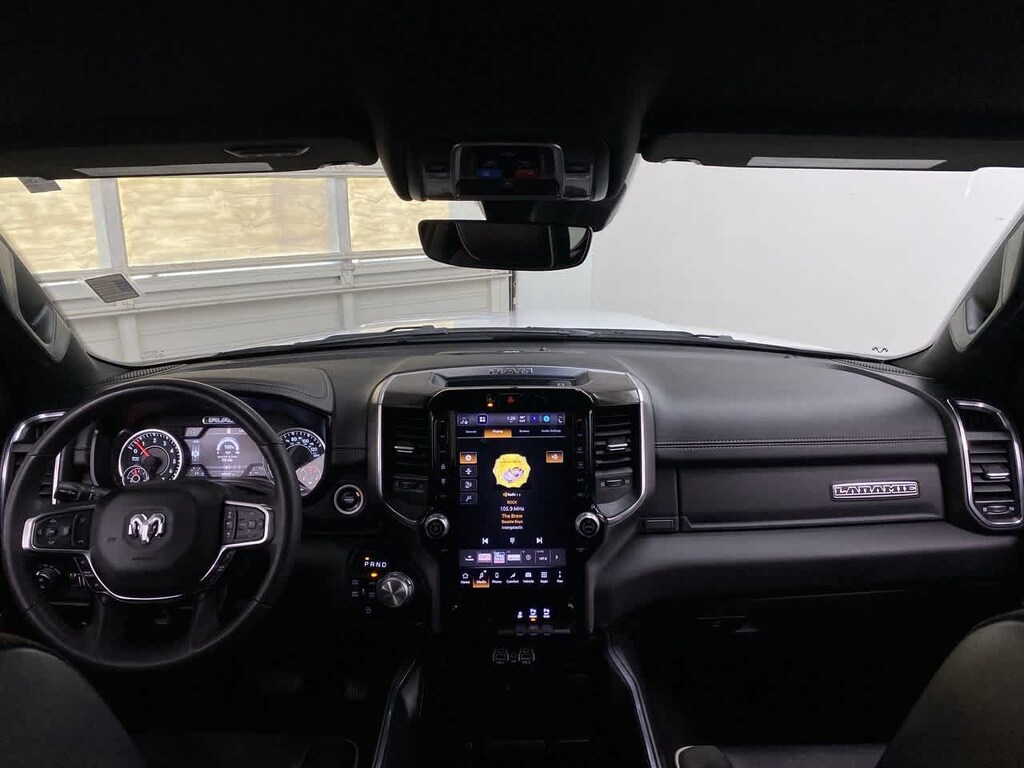 Navigation, 4x4, Heated Driver Seat, Cooled Driver Seat, Back-Up Camera, Premium Sound System, Satellite Radio, iPod/MP3 Input, Bluetooth®, Trailer Hitch, Aluminum Wheels, Remote Engine Start, Dual Zone A/C, Cross-Traffic Alert, Apple CarPlay®. Ram Laramie with Bright White Clearcoat exterior and Black interior features a Straight 6 Cylinder Engine with 420 HP at 5200 RPM*.