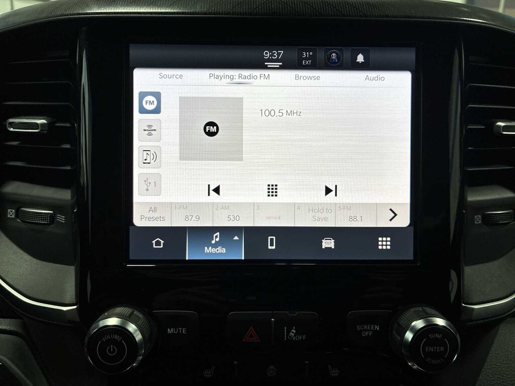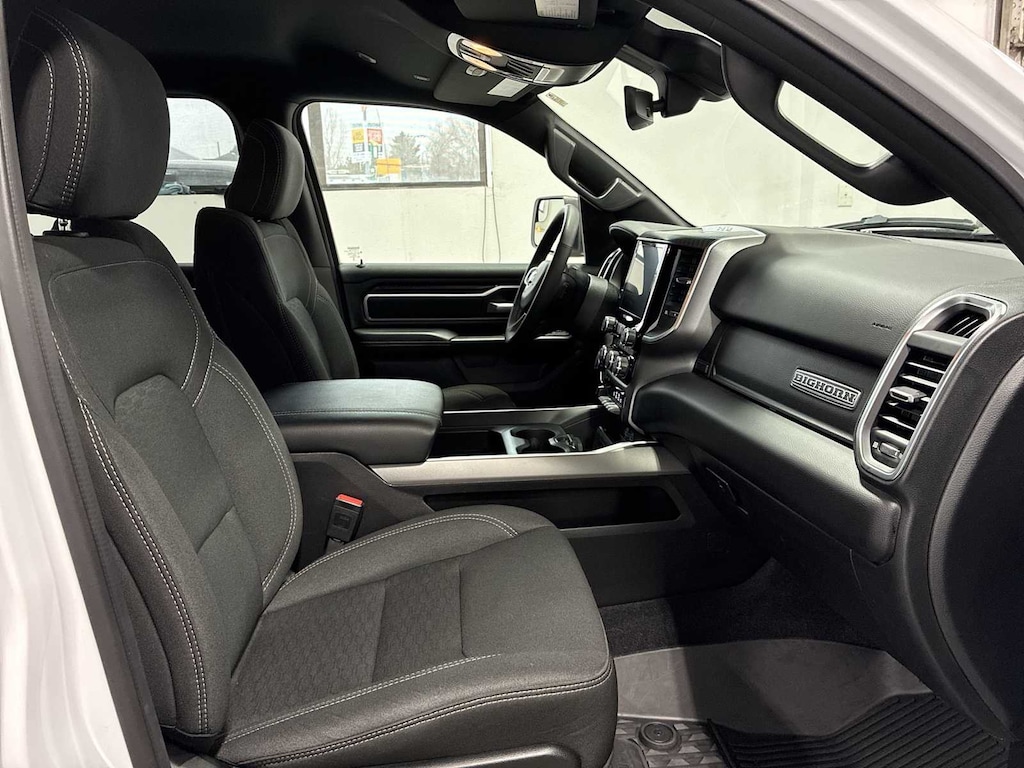 BIG HORN LEVEL 1 EQUIPMENT GROUP Rear Window Defroster, Rear View Auto Dim Mirror, Power Adjustable Pedals, Leather Wrapped Steering Wheel, Rear Power Sliding Window, Glove Box Lamp, Auto Power-Folding Mirrors, Auto Dim Exterior Driver Mirror, Heated Front Seats, Heated Steering Wheel, Black Premium Power Mirrors, 400W Inverter, Exterior Mirrors w/Supplemental Signals, Steering Wheel Mounted Audio Controls, Exterior Mirrors Courtesy Lamps, 115V Auxiliary Power Outlet, Universal Garage Door Opener, Power Adjust 8-Way Driver Seat, 2nd Row In Floor Storage Bins, Sun Visors w/Illuminated Vanity Mirrors, Power 2-Way Driver Lumbar Adjust, 9 AMPLIFIED SPEAKERS W/SUBWOOFER, BLACK, DELUXE CLOTH BUCKET SEATS Bucket Seats, Full Length Floor Console, Power Adjust 8-Way Driver Seat, Rear Center Armrest, Power 2-Way Driver Lumbar Adjust, MOPAR FRONT & REAR RUBBER FLOOR MATS, TRANSMISSION: 8-SPEED AUTOMATIC (8HP75). Ram Big Horn with Bright White Clearcoat exterior and Black interior features a Straight 6 Cylinder Engine with 305 HP at 6400 RPM*.
