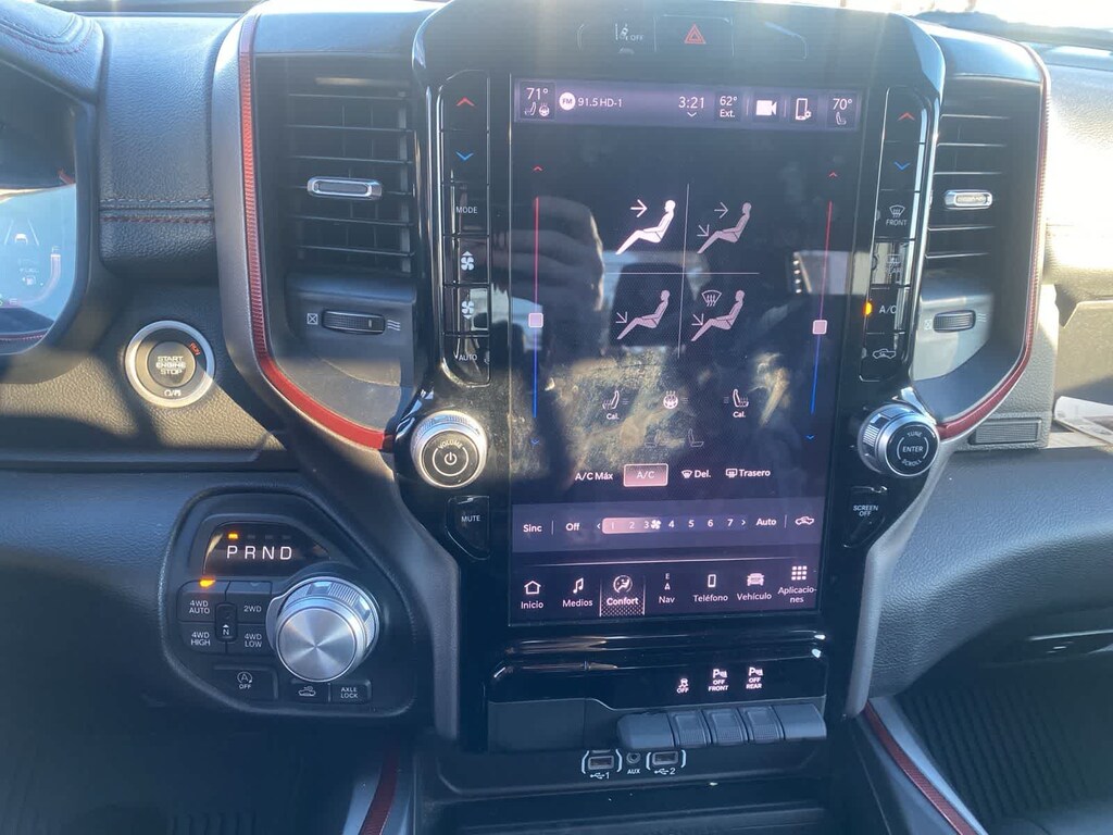 Our Rebel cabin is ready for rough terrain thanks to its heated cloth front seats, eight-way power for the driver, a heated-wrapped steering wheel, dual-zone automatic climate control, a power rear window, remote start, and our Level 1 Pack for power-adjustable pedals and wireless charging. Off-Road Info Pages enhance the infotainment system, which bundles a 12-inch driver display, 12-inch touchscreen, full-color navigation, WiFi compatibility, Android Autoî/Apple CarPlayî, Bluetoothî, voice control, and nine-speaker audio.