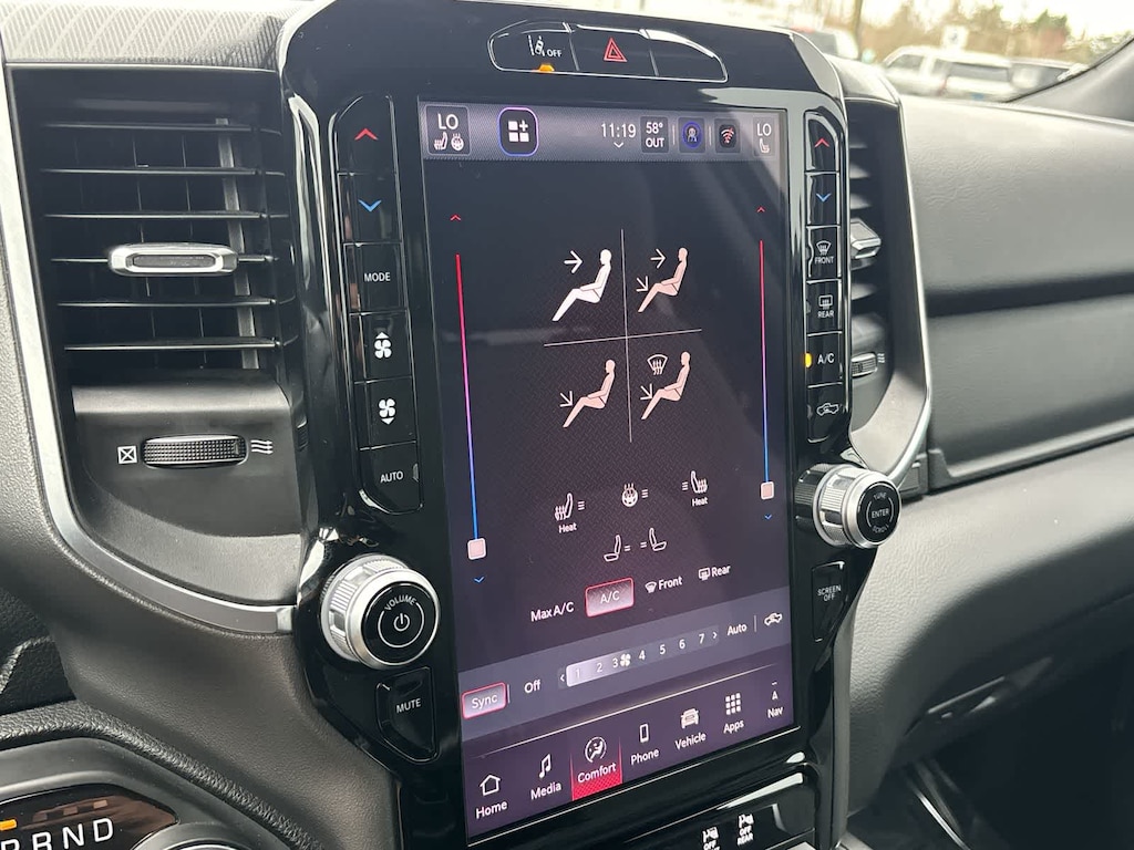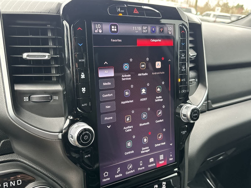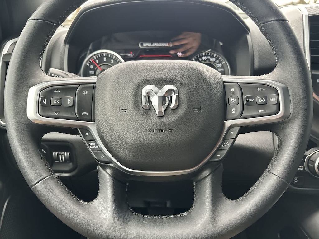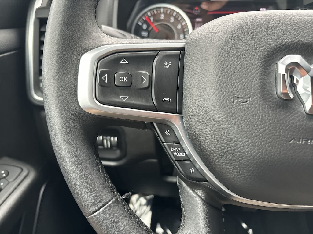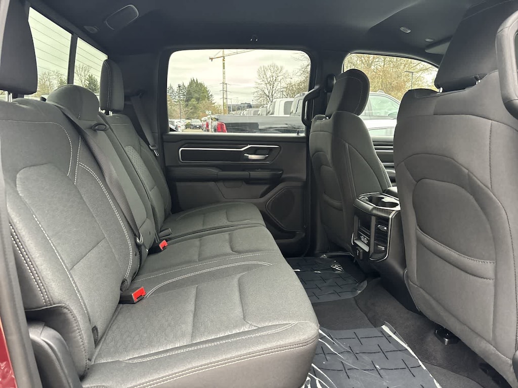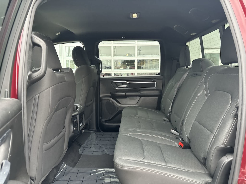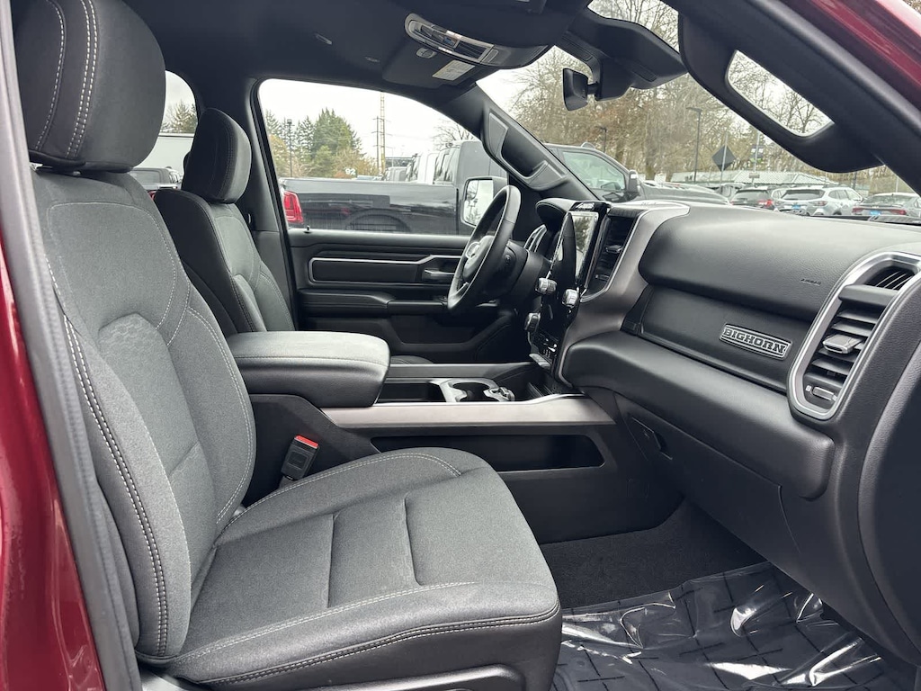 BIG HORN LEVEL 2 EQUIPMENT GROUP Google Android Auto®, Power Adjustable Pedals, Leather Wrapped Steering Wheel, 12 Touchscreen Display, Glove Box Lamp, Auto Power-Folding Mirrors, 115V Auxiliary Rear Power Outlet, Media Hub w/2 Charge Only USBs, Heated Front Seats, Security Alarm, Black Premium Power Mirrors, Apple CarPlay®, Premium Overhead Console, 9 Amplified Speakers w/Subwoofer, Remote Tailgate Release, 115V Auxiliary Power Outlet, LED Dome Lamp w/On/Off Switch, Universal Garage Door Opener, 2nd Row In Floor Storage Bins, Sun Visors w/Illuminated Vanity Mirrors, LED Footwell Lighting, Power 2-Way Driver Lumbar Adjust, Rear Window Defroster, Rear View Auto Dim Mirror, Rear Power Sliding Window, GPS Navigation, Overhead LED Lamps, Auto Dim Exterior Driver Mirror, SiriusXM w/360L, BLACK, DELUXE CLOTH BUCKET SEATS Bucket Seats, Full Length Floor Console, Power Adjust 8-Way Driver Seat, Rear Center Armrest, Power 2-Way Driver Lumbar Adjust, TRANSMISSION: 8-SPEED AUTOMATIC (8HP75). Ram Big Horn with Delmonico Red Pearlcoat exterior and Black interior features a Straight 6 Cylinder Engine with 305 HP at 6400 RPM*.