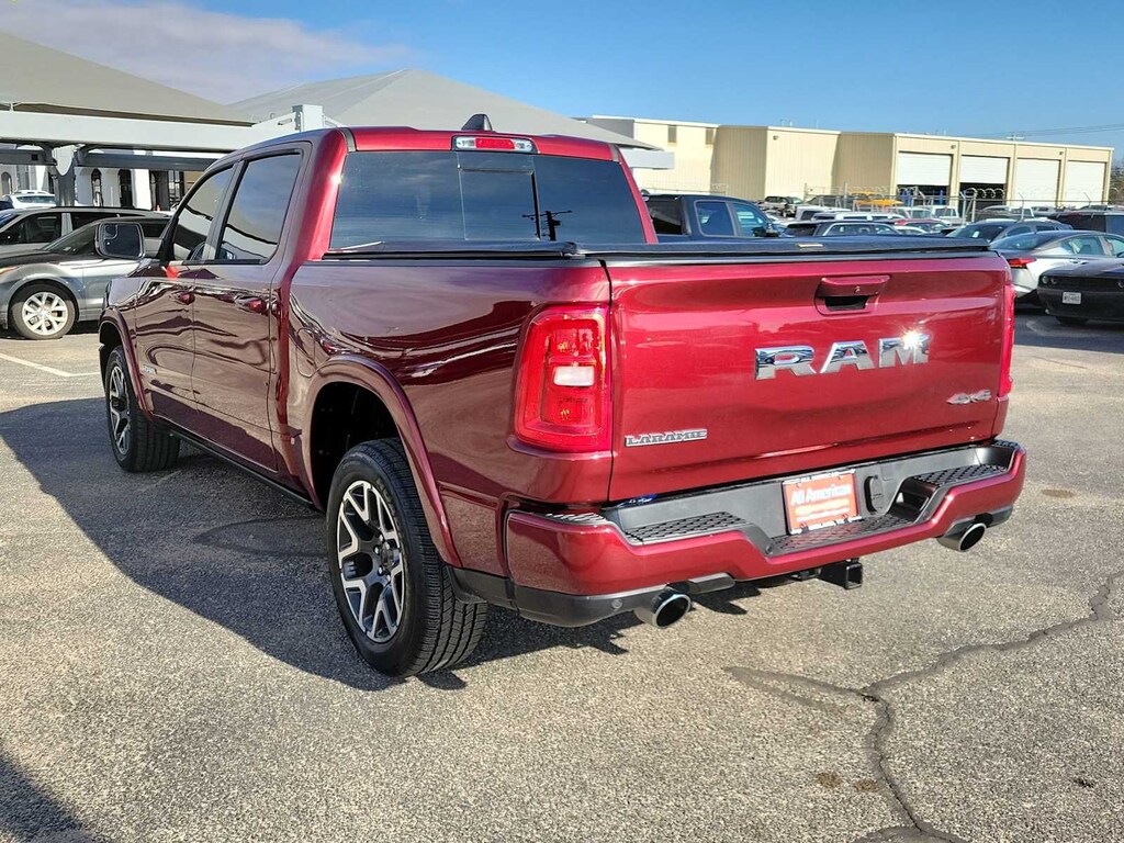 LARAMIE LEVEL 2 EQUIPMENT GROUP Rain Sensitive Windshield Wipers, 14.4 Touchscreen Display, Radio: Uconnect 5 Nav w/14.4 Display, harman/kardon® 19 Speaker Premium Sound, Cluster 12 TFT Color Display, Power Tailgate, LARAMIE SOUTHWEST EDITION Accent Color Premium Power Mirrors, Power Deployable Running Boards, Grille Surround 3 Body Color Tex 4 Chrome, Trailer Brake Control, Tow Hooks, Body Color Front Bumper, Dual-Pane Panoramic Sunroof, LED Dome/Reading Lamp, Dome Dual LED Reading Lamp, Body Color Rear Bumper w/Step Pads, Black Painted Exterior Mirrors Caps, BLACK, LEATHER TRIMMED BUCKET SEATS Bucket Seats, Rear 60/40 Folding Split Recline Seat, #1 Seat Foam Cushion, Center Console Parts Module, Heated Second Row Seats, Power Adjust 8-Way Driver Seat, Full Length Upgraded Floor Console, ANTI-SPIN DIFFERENTIAL REAR AXLE, MOPAR FRONT & REAR RUBBER FLOOR MATS, TRANSMISSION: 8-SPEED AUTOMATIC (8HP75) (STD), ENGINE: 3.0L I6 HURRICANE SO TWIN TURBO ESS (STD). Ram Laramie with Delmonico Red Pearlcoat exterior and Black interior features a Straight 6 Cylinder Engine with 420 HP at 5200 RPM*.