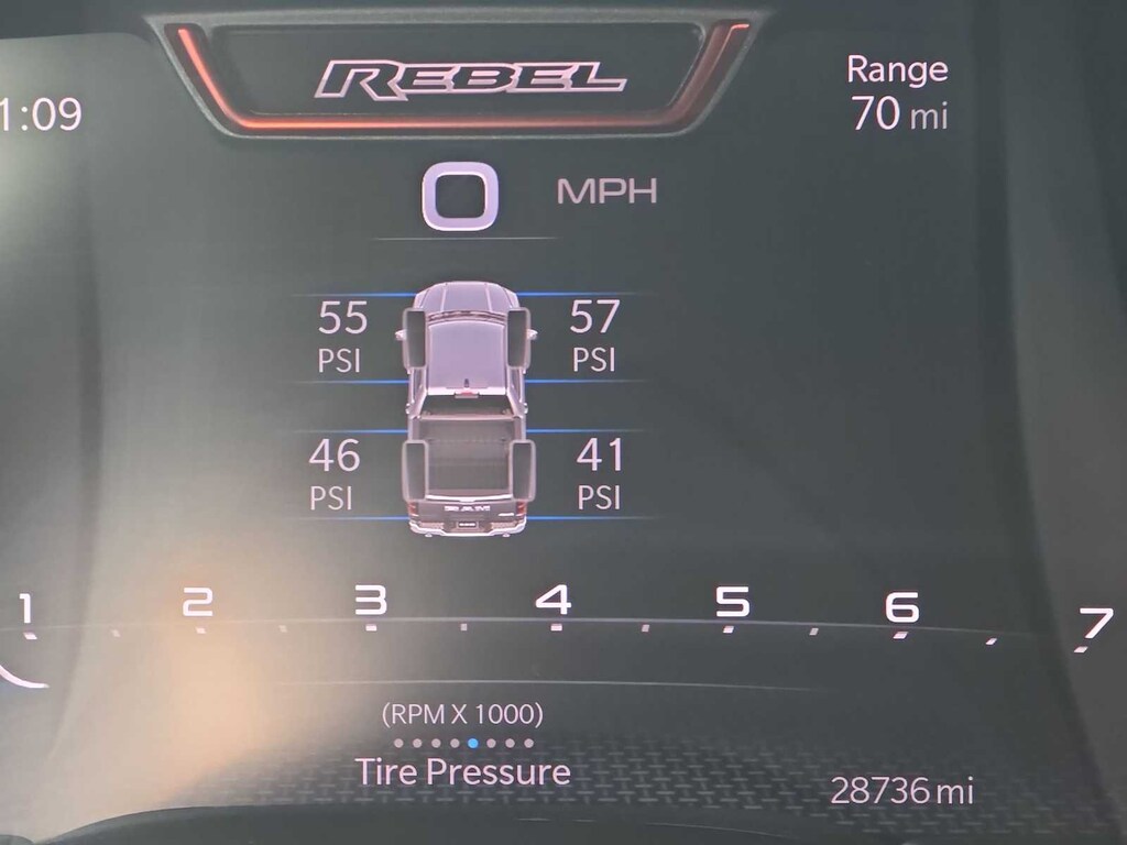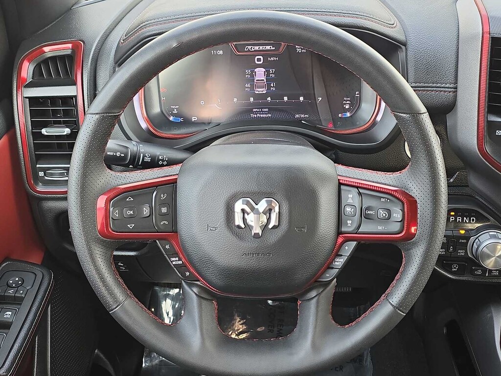 Our Rebel cabin is ready for rough terrain thanks to its heated cloth front seats, eight-way power for the driver, a heated-wrapped steering wheel, dual-zone automatic climate control, a power rear window, remote start, and our Level 1 Pack for power-adjustable pedals and wireless charging. Off-Road Info Pages enhance the infotainment system, which bundles a 12-inch driver display, 12-inch touchscreen, full-color navigation, WiFi compatibility, Android Autoî/Apple CarPlayî, Bluetoothî, voice control, and nine-speaker audio.