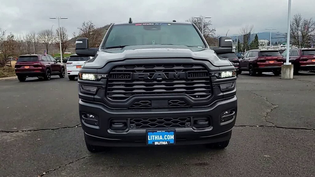 ENGINE: 6.7L I6 CUMMINS HO TURBO DIESEL Selective Catalytic Reduction (Urea), Dual 730 Amp Maintenance Free Batteries, Cummins Turbo Diesel Badge, Heavy Duty Engine Cooling, Diesel Exhaust Brake, Supplemental Heater, 3.42 Axle Ratio, Front Bumper Sight Shields, Capless Fuel Fill w/o Discriminator, GVWR: 11,040 lbs, TRADESMAN LEVEL 1 EQUIPMENT GROUP Convenience Group, Emergency Vehicle Alert System (EVAS), 12 Touchscreen Display, Auto Power-Folding Mirrors, Anti-Spin Differential Rear Axle, Mirror Running Lights, Exterior 115V AC Outlet, Alexa Built-In, Power-Adjustable Convex Aux Mirrors, Forward & Reverse Utility Lights, Disassociated Touchscreen Display, 115V Auxiliary Front Power Outlet, Rear View Auto Dim Mirror, Rear Power Sliding Window, Tinted Acoustic Windshield Glass, GPS Navigation, Exterior Mirrors w/Heating Element, MOPAR Black Tubular Side Steps, SiriusXM w/360L, Connected Travel & Traffic Services, Carpet Floor Covering, Off-Road Info Pages, Trailer Tow Pages, 400W Inverter, HD Radio, Power Heated Folding Telescope Mirrors, Radio: Uconnect 5 Nav w/12.0 Display, Exterior Mirrors, TRANSMISSION: 8-SPEED TORQUEFLITE HD AUTOMATIC, BLACK, CLOTH 40/20/40 BENCH SEAT. Ram Tradesman with Ceramic Gray Clearcoat exterior and Black interior features a Straight 6 Cylinder Engine with 430 HP at 2800 RPM*. Comes with a Lithia 60 Day/3,000 Mile Limited Warranty Clean