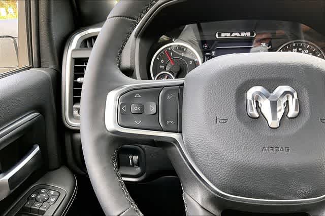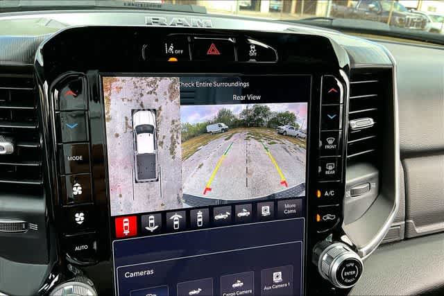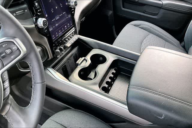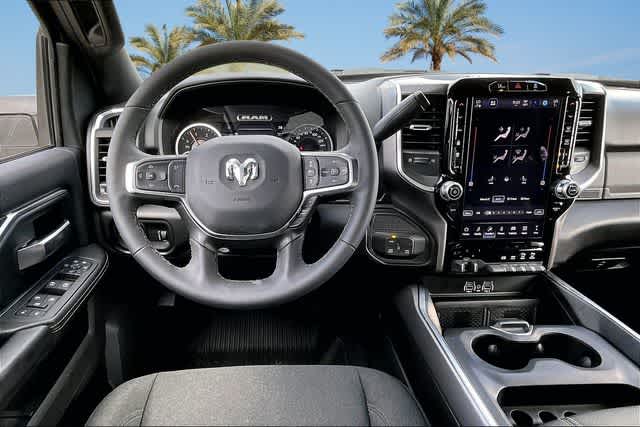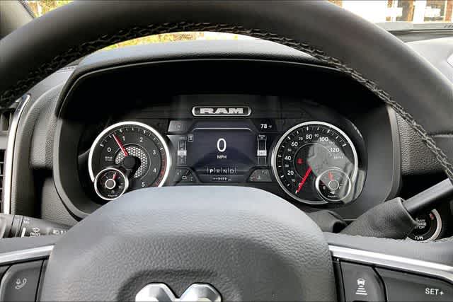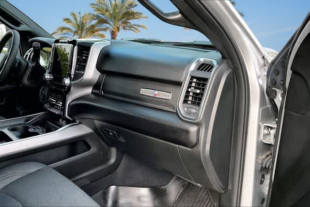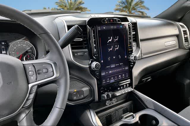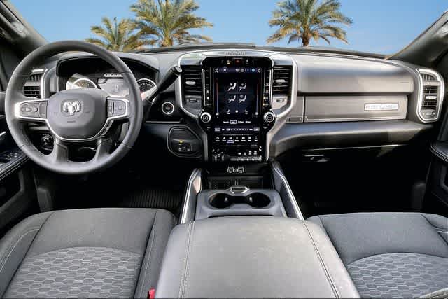 FRESH OIL CHANGE, 115-Volt Auxiliary Front Power Outlet, 12 Touchscreen Display, 2 Way Rear Headrest Seat, 2nd Row in Floor Storage Bins, 4 Way Front Headrests, 4-Wheel Disc Brakes, 40/20/40 Split Bench Seat, 400W Inverter, 4G LTE Wi-Fi Hot Spot, 50 Gallon Fuel Tank, 5th Wheel/Gooseneck Towing Prep Group, 6 Speakers, 9 Alpine Speakers with Subwoofer, ABS brakes, Active Lane Management System, Adaptive Steering System, Air Conditioning, Air Conditioning ATC with Dual Zone Control, Alexa Built-in, Alloy wheels, AM/FM radio: SiriusXM, Apple CarPlay, Apple CarPlay/Android Auto, Auto High Beam Headlamp Control, Auto Power-Folding Mirrors, Auto-Dimming Rear-View Mirror, Big Horn Level 2 Plus Equipment Group, Black Exterior Mirrors, Black Interior Accents, Blind Spot and Cross Path Detection, Body Color Grille Surround, Brake assist, Bucket Seats, Bumpers: chrome, Center Hub, Center Stop Lamp with Cargo View Camera, Clearance Lamps, Cloth 40/20/40 Bench Seat, Cluster 7.0 TFT Color Display, Compass, Connected Travel and Traffic Services, Connectivity - US/Canada, Dampened Tailgate, Delay-off headlights, Disassociated Touchscreen Display, Driver door bin, Drowsy Driver Detection, Dual front impact airbags, Dual front side impact airbags, Dual Glove Boxes, Dual Wireless Charging Pad, Electronic Stability Control, Emergency Vehicle Alert System (EVAS), Exterior 115V AC Outlet, Exterior Mirrors Courtesy Lamps, Exterior Mirrors with Heating Element, Exterior Mirrors with Supplemental Signals, Foam Bottle Insert (door Trim Panel), Folding Flat Load Floor Storage, Footwell Courtesy Lamp, For Details Visit DriveUconnect.com, For More Info, Call 800-643-2112, Forward and Reverse Utility Lights, Front anti-roll bar, Front Armrest with Cupholders, Front Center Armrest w/Storage, Front fog lights, Front License Plate Bracket, Front reading lights, Front Seat Back Map Pockets, Full Length Upgraded Floor Console, Fully automatic headlights, Global Telematics Box Module, Glove Box Lamp, Google Android Auto, GPS Antenna Input, GPS Navigation, HD Radio, Heated door mirrors, Heated Front Seats, Heated Steering Wheel, Illuminated entry, Integrated Voice Command with Bluetooth, LED Bed Lighting, LED Tail Lamps, Locking Lower Glove Box, Lone Star Badge, Low tire pressure warning, Luxury Steering Wheel, Manual Adjust 4-Way Driver Seat, Manual Adjust 4-Way Front Passenger Seat, Manufacturers Statement of Origin, Mirror Running Lights, MOPAR Deployable Bed Step, MOPAR Front and Rear Rubber Floor Mats, MOPAR Spray in Bedliner, MOPAR Trailer Camera Wiring with No Camera, Occupant sensing airbag, Off-Road Information Pages, Outside temperature display, Overhead airbag, Overhead console, Painted Front Bumper, Painted Rear Bumper, Panic alarm, ParkView Rear Back-Up Camera, Passenger door bin, Passenger vanity mirror, Power 2-Way Driver Lumbar Adjust, Power Adjust 8-Way Driver Seat, Power Adjust Mirrors, Power Adjustable Pedals, Power door mirrors, Power Heated Fold Telescopic Mirrors, Power steering, Power Telescoping Mirrors, Power windows, Power-Adjustable Convex Aux Mirrors, Premium Cloth Bucket Seats, Quick Order Package 24Y Lone Star, Radio data system, Radio: Uconnect 5 Navigation with 12.0 Display, Radio: Uconnect 5 with 8.4 Display, Rain Sensitive Windshield Wipers, Rear 60/40 Folding Seat, Rear Dome with on/Off Switch Lamp, Rear Folding Seat, Rear Power Sliding Window, Rear seat center armrest, Rear step bumper, Rear window defroster, Red Tail Lamp Bezels, Remote keyless entry, Remote Start System, Remote USB Port - Charge Only, Selectable Tire Fill Alert, SiriusXM Radio Service, SiriusXM with 360L, Speed control, Sport Appearance Package, Sport Decal, Steering Wheel Mounted Audio Controls, Storage Tray, Sun Visors with Illuminated Vanity Mirrors, Surround View Camera System, Tachometer, Tilt steering wheel, Traction control, Traffic Sign Recognition, Trailer Reverse Guidance, Trailer Tire Pressure Monitoring System, Trailer Tow Pages, Trip computer