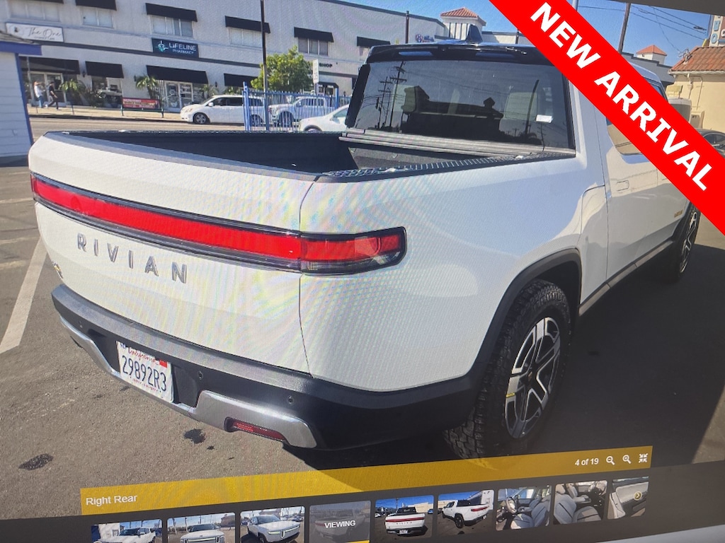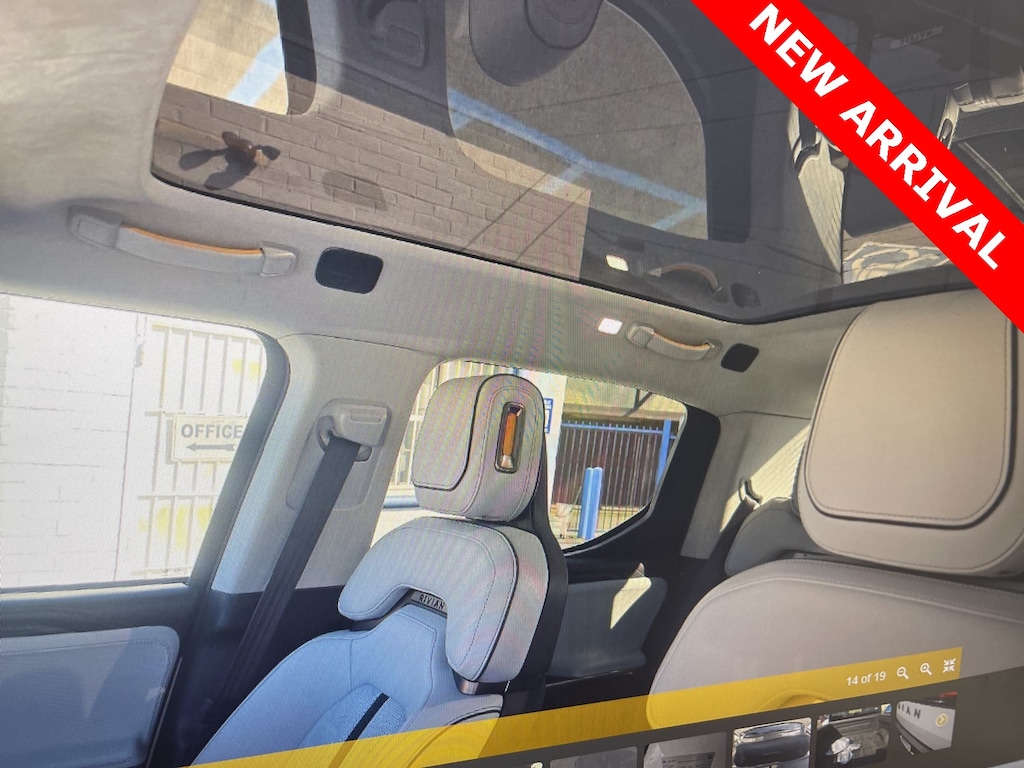 THIS VEHICLE IS EQUIPPED WITH THE FOLLOWING OPTIONS AND FEATURES: 19 Speakers, 4-Wheel Disc Brakes, ABS brakes, Adaptive suspension, Air Conditioning, Alloy wheels, Audio memory, Auto High-beam Headlights, Auto tilt-away steering wheel, Auto-dimming door mirrors, Auto-dimming Rear-View mirror, Auto-leveling suspension, Automatic temperature control, Brake assist, Delay-off headlights, Driver door bin, Driver vanity mirror, Dual front impact airbags, Dual front side impact airbags, Electronic Stability Control, Emergency communication system, Exterior Parking Camera Rear, Four wheel independent suspension, Front anti-roll bar, Front Bucket Seats, Front Center Armrest, Front dual zone A/C, Front fog lights, Front reading lights, Fully automatic headlights, Genuine wood console insert, Genuine wood dashboard insert, Genuine wood door panel insert, Heated & Ventilated Front Bucket Seats, Heated door mirrors, Heated front seats, Heated steering wheel, Illuminated entry, Knee airbag, Low tire pressure warning, Memory seat, Navigation System, Occupant sensing airbag, Outside temperature display, Overhead airbag, Panic alarm, Passenger door bin, Passenger vanity mirror, Perf Vegan Leather Seat Trim w/Patterned Stitching, Power door mirrors, Power driver seat, Power passenger seat, Power steering, Power windows, Radio: Rivian Elevation Audio by Meridian, Rain sensing wipers, Rear air conditioning, Rear anti-roll bar, Rear audio controls, Rear dual zone A/C, Rear fog lights, Rear reading lights, Rear seat center armrest, Rear window defroster, Remote keyless entry, Security system, Speed control, Speed-sensing steering, Split folding rear seat, Spoiler, Steering wheel memory, Steering wheel mounted audio controls, Telescoping steering wheel, Tilt steering wheel, Traction control, Trip computer, Turn signal indicator mirrors, Variably intermittent wipers, Ventilated front seats, and Wheels: 21 Road Machined Aluminum. Recent Arrival!