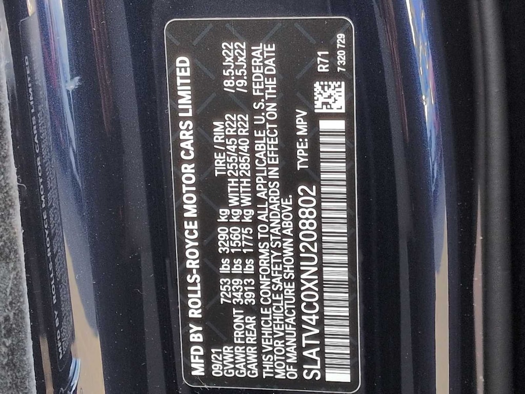 Clean CARFAX. AWD 2022 Rolls-Royce Cullinan 8-Speed Automatic Midnight Sapphire 6.7L DOHC Active Cruise Control w/Stop & Go, Bespoke Interior - Module Editing, Driver Assistance System, Extended Leather Headliner, Heads-Up Display, Mixed Natural & Fullgrain Leather, Navigation System, Night Vision, Open Pore Blackwood Veneer, Park Assist, Shooting Star Headliner, Signature Key.
