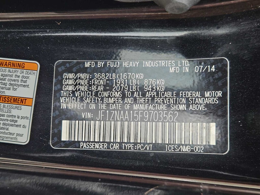 RWD 6-Speed Manual D-4S 2.0L H4 DOHC