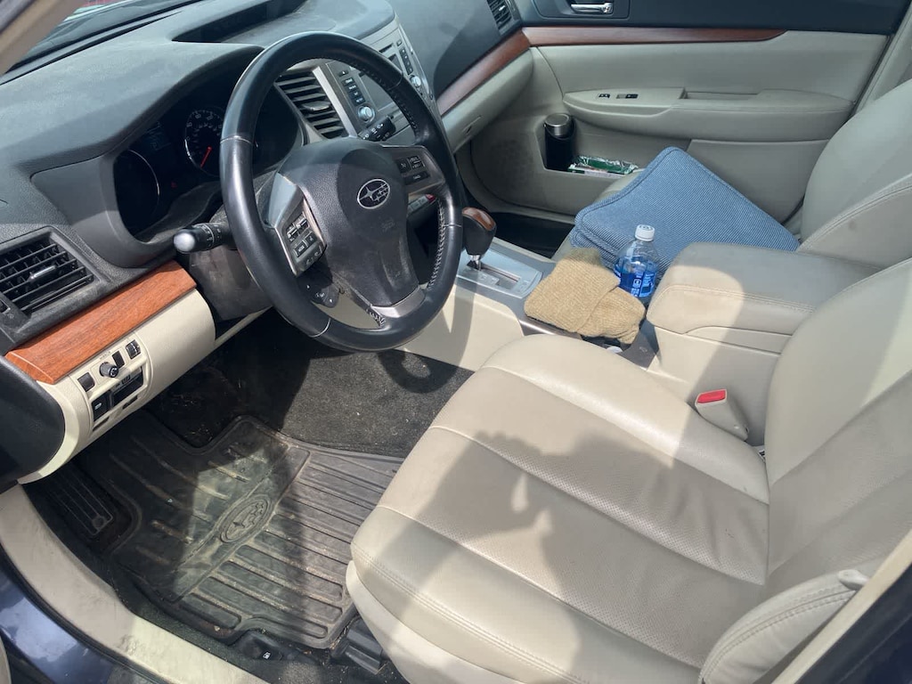 Clean CARFAX. Twilight Blue Metallic 2014 Subaru Outback 2.5i Limited AWD CVT Lineartronic 2.5L 4-Cylinder DOHC 16V 17 x 7.0 Aluminum Alloy w/Machine Finish Wheels, 3.9 Axle Ratio, 4-Wheel Disc Brakes, 9 Speakers, ABS brakes, Accessory Value Package (OYY), Air Conditioning, All Weather Floor Mats (Set of 4), Alloy wheels, AM/FM radio: SiriusXM, Anti-whiplash front head restraints, Auto-Dimming Rear View Mirror w/Homelink, Automatic temperature control, Brake assist, Bumpers: body-color, CD player, Driver door bin, Driver vanity mirror, Dual front impact airbags, Dual front side impact airbags, Electronic Stability Control, Four wheel independent suspension, Front anti-roll bar, Front Bucket Seats, Front Center Armrest w/Storage, Front dual zone A/C, Front fog lights, Front reading lights, Fully automatic headlights, harman/kardon Speaker System, harman/kardonî Speakers, Heated door mirrors, Heated Front Bucket Seats, Heated front seats, Illuminated entry, Low tire pressure warning, Moonroof Package, Occupant sensing airbag, Outside temperature display, Overhead airbag, Overhead console, Panic alarm, Passenger door bin, Passenger vanity mirror, Perforated Leather-Trimmed Upholstery, Power door mirrors, Power driver seat, Power Moonroof, Power passenger seat, Power steering, Power windows, Puddle Lights, Radio data system, Radio: AM/FM Stereo w/HD Radio & Single CD Player, Rear anti-roll bar, Rear Bumper Cover, Rear Seat Back Protector, Rear seat center armrest, Rear Vision Camera, Rear window defroster, Rear window wiper, Remote keyless entry, Roof rack, Security system, Speed control, Speed-sensing steering, Splash Guards, Split folding rear seat, Spoiler, Steering wheel mounted audio controls, Steering-Wheel Paddle-Shift Control Switches, Tachometer, Telescoping steering wheel, Tilt steering wheel, Traction control, Trip computer, Twilight Blue Metallic Body Side Molding, Variably intermittent wipers, Wheel Arch Molding.