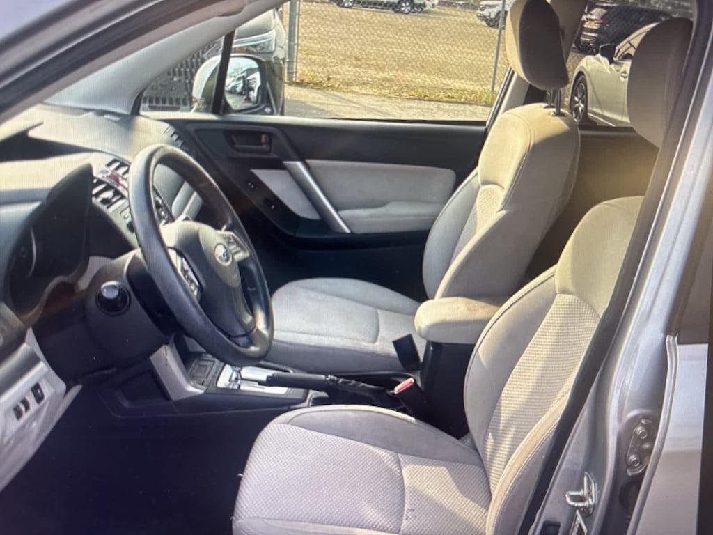 Clean CARFAX. Ice Silver Metallic 2015 Subaru Forester 2.5i Premium AWD Lineartronic CVT 2.5L 4-Cylinder DOHC 16V VVT 17 Alloy Wheels, 3.70 Axle Ratio, 4-Wheel Disc Brakes, 6 Speakers, ABS brakes, Air Conditioning, All Weather Floor Mats, All-Weather Package, Alloy wheels, AM/FM radio, Auto-Dimming Mirror w/Compass & HomeLink, Brake assist, Bumpers: body-color, Cargo Tray, CD player, Cloth Upholstery, Driver door bin, Driver vanity mirror, Dual front impact airbags, Dual front side impact airbags, Electronic Stability Control, Exterior Parking Camera Rear, Four wheel independent suspension, Front anti-roll bar, Front Bucket Seats, Front Center Armrest, Front reading lights, Heated Exterior Mirrors, Heated Front Seats, Illuminated entry, Knee airbag, Low tire pressure warning, Luggage Compartment Cover, Occupant sensing airbag, Outside temperature display, Overhead airbag, Overhead console, Panic alarm, Passenger door bin, Passenger vanity mirror, Power door mirrors, Power driver seat, Power moonroof, Power steering, Power windows, Protection Package #1, Radio data system, Radio: AM/FM Stereo w/HD & Single CD Player, Rear anti-roll bar, Rear Bumper Cover, Rear Seat Back Protector, Rear seat center armrest, Rear window defroster, Rear window wiper, Remote keyless entry, Ro