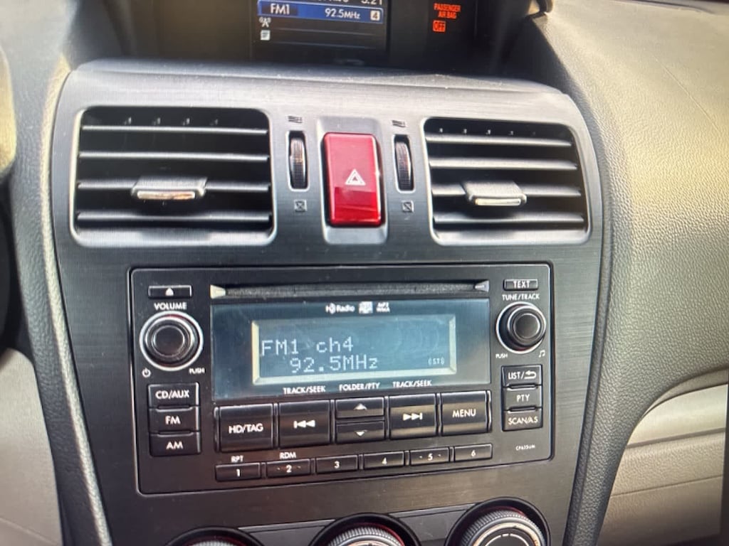 Safety equipment includes a rearview camera, dual front and side airbags, knee airbag, occupant sensing airbag, electronic stability control, traction control, low tire pressure monitoring, variably intermittent wipers, and windshield wiper de-icer. The Forester also features antiwhiplash head restraints, fully automatic headlights, fog lights, and rear window defroster.