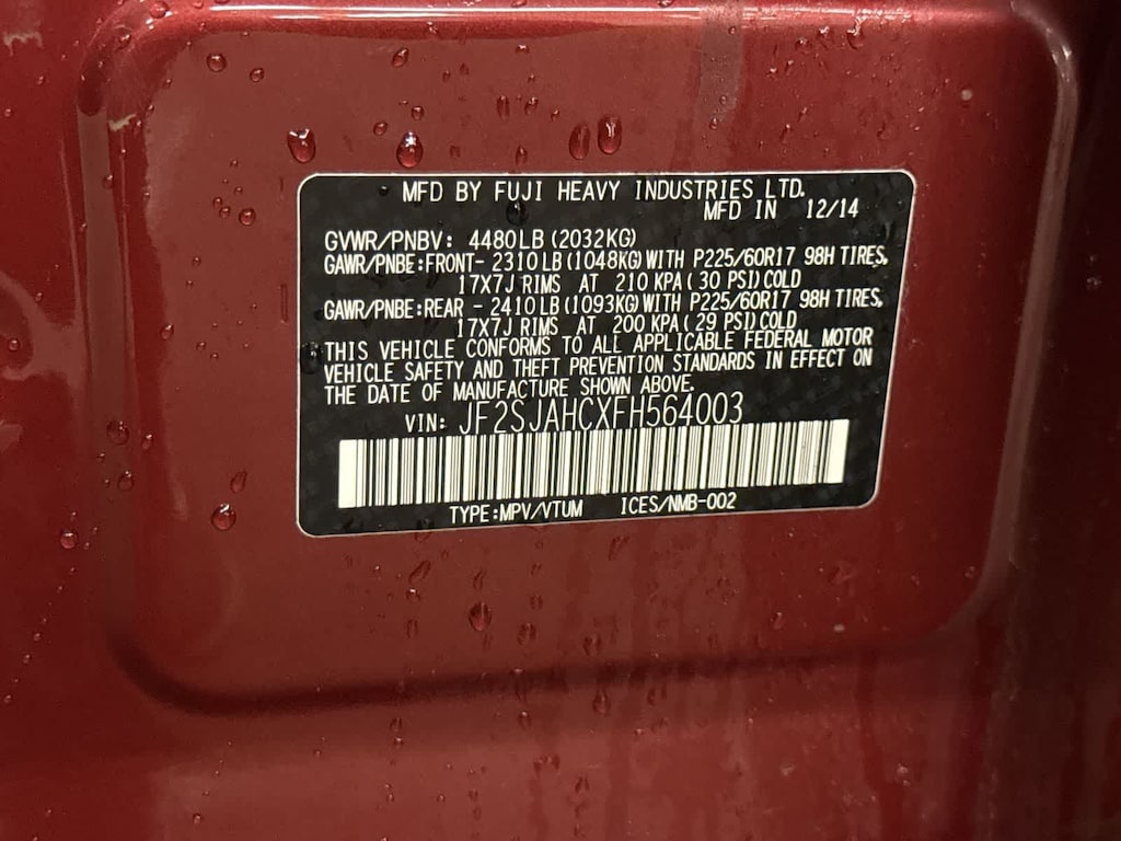 CARFAX One-Owner. Venetian Red Pearl 2015 Subaru Forester 2.5i Limited AWD Lineartronic CVT 2.5L 4-Cylinder DOHC 16V VVT 17 Alloy Wheels, 3.70 Axle Ratio, 4-Wheel Disc Brakes, 6 Speakers, ABS brakes, Air Conditioning, Alloy wheels, AM/FM radio, Automatic temperature control, Brake assist, Bumpers: body-color, CD player, Driver door bin, Driver vanity mirror, Dual front impact airbags, Dual front side impact airbags, Electronic Stability Control, Exterior Parking Camera Rear, Four wheel independent suspension, Front anti-roll bar, Front Bucket Seats, Front Center Armrest, Front fog lights, Front reading lights, Fully automatic headlights, harman/kardon 440W Amp & Speaker System, Heated door mirrors, Heated Front Bucket Seats, Heated front seats, Illuminated entry, Knee airbag, Leather Shift Knob, Low tire pressure warning, Occupant sensing airbag, Outside temperature display, Overhead airbag, Overhead console, Panic alarm, Passenger door bin, Passenger vanity mirror, Perforated Leather-Trimmed Upholstery, Power door mirrors, Power driver seat, Power Liftgate, Power moonroof, Power steering, Power windows, Radio data system, Radio: AM/FM Stereo w/HD & Single CD Player, Rear anti-roll bar, Rear seat center armrest, Rear window defroster, Rear window wiper, Remote keyless entry, Roof rack: rails only, Security system, Speed control, Split folding rear seat, Spoiler, Steering wheel mounted audio controls, Tachometer, Telescoping steering wheel, Tilt steering wheel, Traction control, Trip computer, Variably intermittent wipers.