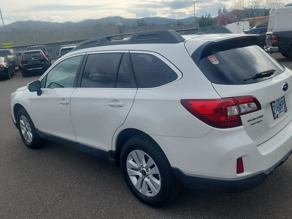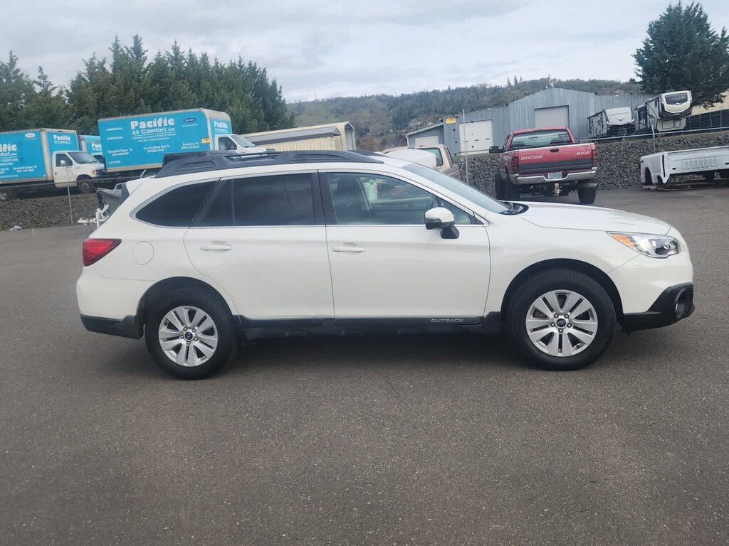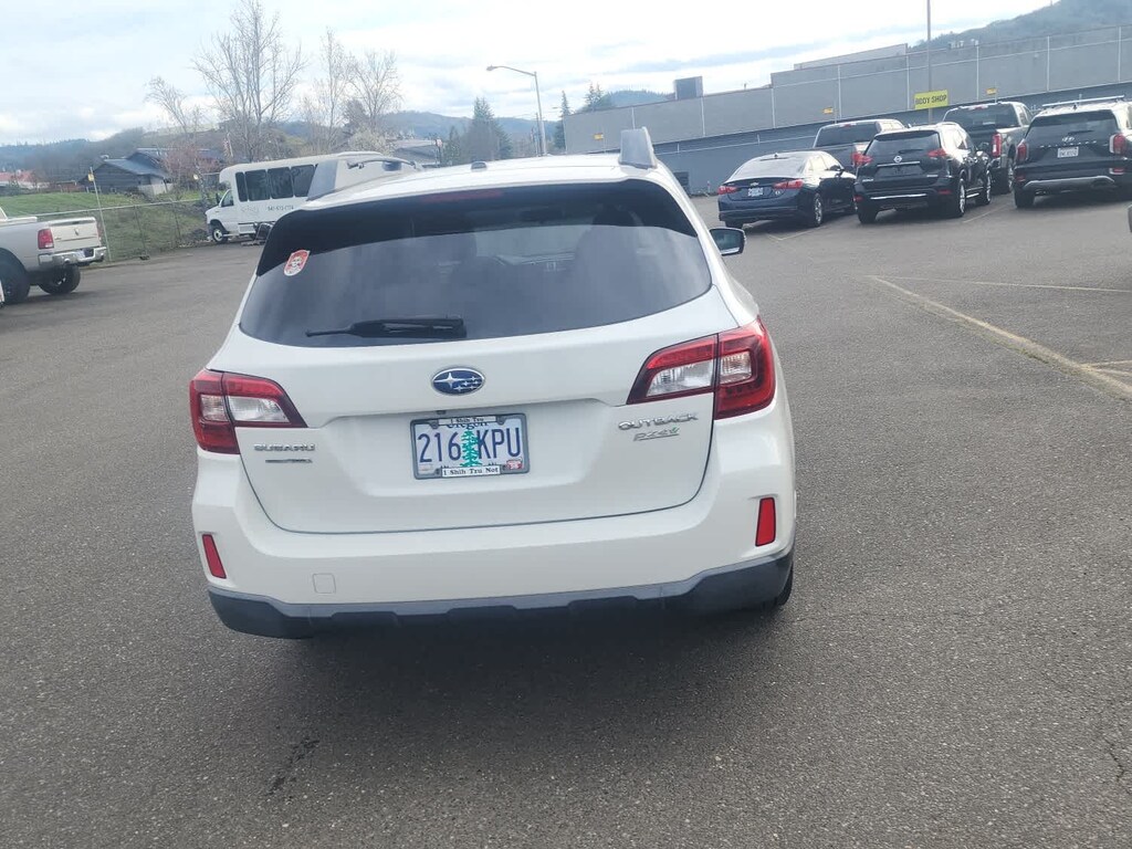 EYESIGHT & BLIND SPOT DETECTION & POWER REAR GATE Driver Assist Technology, EyeSight System, lead vehicle start alert (vehicle in front), cruise control on, cruise control set, follow distance setting indicator, lead vehicle indicator, lane departure and sway indicator, pre-collision indicator, ready indicator, set vehicle speed display, steering wheel indicator, warning chime, lane departure off warning light, pre-collision braking system off indicator light, system temporary off warning light, system malfunction off warning light and eyesight camera malfunction warning light, Lane Departure Warning, sway warning and warning off switch, Pre-Collision System, braking system, braking system off switch, brake assist and throttle management (engine control), Adaptive Cruise Control, Subaru. 2015 Subaru Outback with Crystal White Pearl exterior and Slate Black interior features a 4 Cylinder Engine with 175 HP at 5800 RPM*. Non-Smoker vehicle