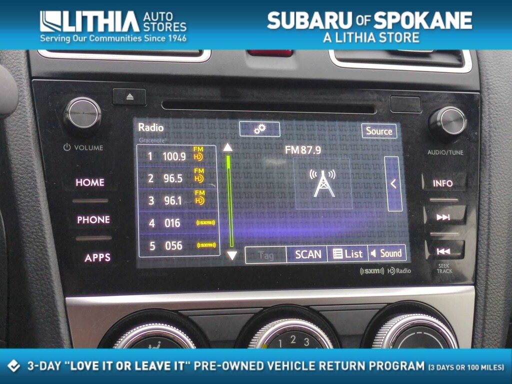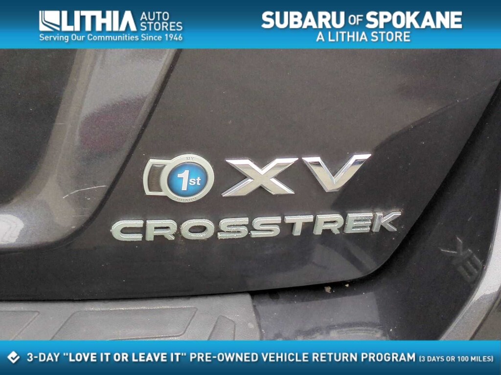 CARFAX One-Owner. Dark Gray Metallic 2015 Subaru XV Crosstrek 2.0i Premium AWD Lineartronic CVT 2.0L 16V DOHC 17 x 7.0J Aluminum Alloy Wheels, 3.70 Axle Ratio, 4-Wheel Disc Brakes, 6 Speakers, ABS brakes, Adaptive Cruise Control, Air Conditioning, Alloy wheels, AM/FM radio, Brake assist, Bumpers: body-color, CD player, Charge-Coupled Device Cameras, Cloth Upholstery, Driver door bin, Driver vanity mirror, Dual front impact airbags, Dual front side impact airbags, Electronic Stability Control, Exterior Parking Camera Rear, Eyesight & Subaru Starlink 7.0 Multimedia Plus Pkg, Four wheel independent suspension, Front anti-roll bar, Front Bucket Seats, Front Center Armrest, Front fog lights, Front reading lights, Heated door mirrors, Heated Front Bucket Seats, Heated front seats, Illuminated entry, Knee airbag, Lane Departure Warning System, Low tire pressure warning, MP3 decoder, Occupant sensing airbag, Outside temperature display, Overhead airbag, Panic alarm, Passenger door bin, Passenger vanity mirror, Power door mirrors, Power steering, Power windows, Pre-Collision Brake Assist, Pre-Collision Braking System, Radio data system, Radio: Subaru Starlink 6.2 Multimedia System, Radio: Subaru Starlink 7.0 Multimedia Plus System, Rear anti-roll bar, Rear Vision Camera, Rear window defroster, Rear window wiper, Remote keyless entry, Roof rack: rails only, Security system, Speed control, Speed-sensing steering, Split folding rear seat, Spoiler, Steering Responsive Fog Lights, Steering wheel mounted audio controls, Subaru Starlink Smartphone Integration, Tachometer, Telescoping steering wheel, Tilt steering wheel, Traction control, Trip computer, Variably intermittent wipers.