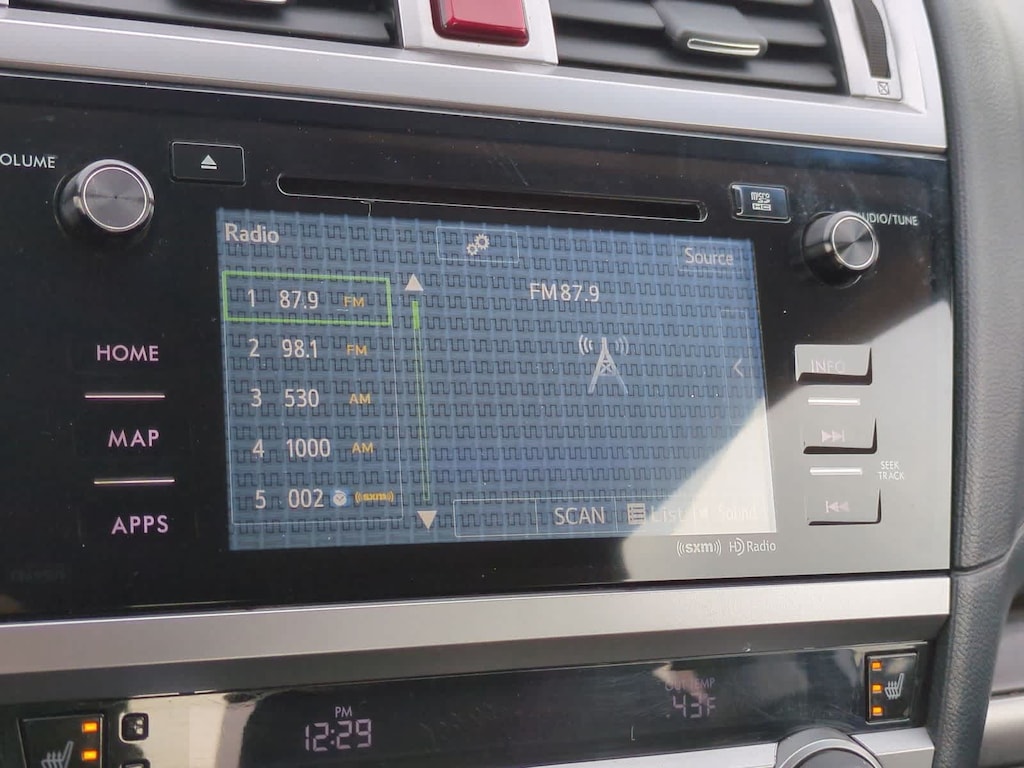 CARFAX One-Owner. Ice Silver Metallic 2016 Subaru Legacy 2.5i Limited AWD CVT Lineartronic 2.5L 4-Cylinder DOHC 16V 12 Speakers, 4-Wheel Disc Brakes, ABS brakes, Aha, Air Conditioning, Alloy wheels, AM/FM radio: SiriusXM, Anti-whiplash front head restraints, Auto-Dimming Rear View Compass Mirror w/Homelink, Automatic temperature control, Brake assist, Bumpers: body-color, CD player, Driver door bin, Driver vanity mirror, Dual front impact airbags, Dual front side impact airbags, Electronic Stability Control, Emergency communication system, Exterior Auto Dimming Mirror For BSD, Exterior Parking Camera Rear, Four wheel independent suspension, Front anti-roll bar, Front Bucket Seats, Front Center Armrest w/Storage, Front dual zone A/C, Front fog lights, Front reading lights, Fully automatic headlights, harman/kardon Surround Sound Speaker System, harman/kardonî Speakers, Heated door mirrors, Heated front seats, Heated rear seats, Heated Reclining Front Bucket Seats, Illuminated Engine Start/Stop Switch, Illuminated entry, Leather Shift Knob, Legacy Cargo Tray, Low tire pressure warning, Memory seat, Moonroof Package & Keyless Access & Navi, Navigation System, Occupant sensing airbag, Outside temperature display, Overhead airbag, Overhead console, Panic alarm, Passenger door bin, Passenger vanity mirror, Perforated Leather-Trimmed Upholstery, Pin Code Access, Popular Package #5, Power door mirrors, Power driver seat, Power Moonroof Package, Power passenger seat, Power steering, Power windows, Radio data system, Radio: Subaru Starlink 7.0 Multimedia Nav System, Radi