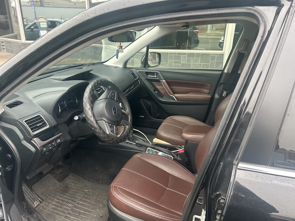 Crystal Black Silica 2017 Subaru Forester 2.0XT Touring AWD Lineartronic CVT 2.0L 4-Cylinder DOHC 16V Turbocharged Intercooled 18 Alloy Wheels, 4-Wheel Disc Brakes, 4.11 Axle Ratio, 8 Speakers, ABS brakes, Air Conditioning, Alloy wheels, AM/FM radio: SiriusXM, Automatic temperature control, Brake assist, Bumpers: body-color, CD player, Driver door bin, Driver vanity mirror, Dual front impact airbags, Dual front side impact airbags, Electronic Stability Control, Emergency communication system: STARLINK, Exterior Parking Camera Rear, EyeSight & Navigation System w/Saddle Brown Int, EyeSight System, Four wheel independent suspension, Front anti-roll bar, Front Bucket Seats, Front Center Armrest, Front dual zone A/C, Front fog lights, Front reading lights, Fully automatic headlights, harman/kardon 440W Amp & Speaker System, harman/kardonî Speakers, Heated door mirrors, Heated Front Bucket Seats, Heated front seats, Heated steering wheel, High Beam Assist (HBA), Illuminated entry, Knee airbag, Leather Shift Knob, Low tire pressure warning, Memory seat, Navigation System, Occupant sensing airbag, Outside temperature display, Overhead airbag, Overhead console, Panic alarm, Passenger door bin, Passenger vanity mirror, Perforated Leather-Trimmed Upholstery, Power door mirrors, Power driver seat, Power Liftgate, Power moonroof, Power steering, Power windows, Radio data system, Radio: Subaru Starlink 7.0 Multimedia Nav System, Radio: Subaru Starlink 7.0 Multimedia Plus System, Rear anti-roll bar, Rear seat center armrest, Rear window defroster, Rear window wiper, Remote keyless entry, Reverse Automatic Braking System (RAB), Roof rack: rails only, Security system, Speed control, Split folding rear seat, Spoiler, Steering wheel mounted audio controls, Tachometer, Telescoping steering wheel, Tilt steering wheel, Traction control, Trip computer, Turn signal indicator mirrors, Variably intermittent wipers.