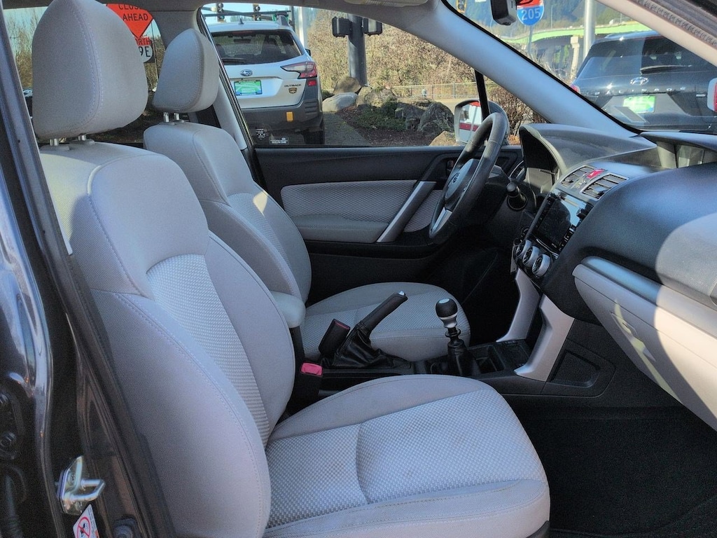 17 Alloy Wheels, 4-Wheel Disc Brakes, 4.44 Axle Ratio, 6 Speakers, ABS brakes, Air Conditioning, All-Weather Floor Mats, Alloy wheels, AM/FM radio: SiriusXM, Auto-Dimming Mirror w/Compass & HomeLink, Automatic temperature control, Brake assist, Bumpers: body-color, Cargo Cover - Manual Rear Gate, Cargo Tray, CD player, Cloth Upholstery, Driver door bin, Driver vanity mirror, Dual front impact airbags, Dual front side impact airbags, Electronic Stability Control, Emergency communication system: STARLINK, Exhaust Tip, Exterior Parking Camera Rear, Four wheel independent suspension, Front anti-roll bar, Front Bucket Seats, Front Center Armrest, Front reading lights, Heated door mirrors, Heated front seats, Illuminated entry, Knee airbag, Low tire pressure warning, Occupant sensing airbag, Outside temperature display, Overhead airbag, Overhead console, Panic alarm, Passenger door bin, Passenger vanity mirror, Power door mirrors, Power driver seat, Power moonroof, Power steering, Power windows, Radio data system, Radio: Subaru Starlink 7.0 Multimedia Plus System, Rear anti-roll bar, Rear Bumper Cover, Rear seat center armrest, Rear window defroster, Rear window wiper, Remote keyless entry, Roof rack: rails only, Security system, Speed control, Split folding rear seat, Spoiler, Steering wheel mounted audio controls, STI Shift Knob - 6MT, Tachometer, Telescoping steering wheel, Tilt steering wheel, Traction control, Trip computer, Variably intermittent wipers. Dark Gray Metallic 2017 Subaru Forester 2.5i Premium AWD 6-Speed Manual 2.5L 4-Cylinder DOHC 16V VVT