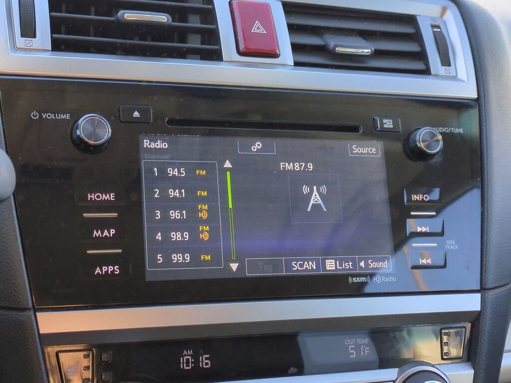 CARFAX One-Owner. Carbide Gray Metallic 2017 Subaru Outback 2.5i Premium AWD CVT Lineartronic 2.5L 4-Cylinder DOHC 16V 17 x 7.0 Aluminum Alloy w/Silver Finish Wheels, 4-Wheel Disc Brakes, 4.111 Axle Ratio, 6 Speakers, ABS brakes, Adaptive Cruise Control, Air Conditioning, All Weather Floor Mats, Alloy wheels, AM/FM radio: SiriusXM, Anti-whiplash front head restraints, Auto-Dimming Rear View Compass Mirror w/Homelink, Automatic temperature control, Blind Spot Detection (BSD), Brake assist, Bumpers: body-color, CD player, Cloth Upholstery, Driver door bin, Driver vanity mirror, Dual front impact airbags, Dual front side impact airbags, Electronic Stability Control, Emergency communication system, Exterior Auto Dimming Mirror For BSD, Exterior Parking Camera Rear, Four wheel independent suspension, Front anti-roll bar, Front Bucket Seats, Front Center Armrest w/Storage, Front dual zone A/C, Front fog lights, Front reading lights, Fully automatic headlights, Heated door mirrors, Heated front seats, Heated Reclining Front Bucket Seats, High Beam Assist, Illuminated entry, Lane Departure Warning System, Leather Shift Knob, Low tire pressure warning, Moonroof & Pwr Gate & Navi & EyeSight & Blind Spot, Navigation System, Occupant sensing airbag, Outside temperature display, Overhead airbag, Overhead console, Panic alarm, Passenger door bin, Passenger vanity mirror, Popular Package #5, Power door mirrors, Power driver seat, Power Moonroof Package, Power Rr Gate w/ Automatic Close & Height Memory, Power steering, Power windows, Pre-Collision System, Radio: Subaru Starlink 7.0 Multimedia Nav System, Radio: Subaru Starlink 7.0 Multimedia Plus System, Rear anti-roll bar, Rear Bumper Cover, Rear Cross Traffic Alert (RCTA), Rear Seat Back Protector, Rear seat center armrest, Rear window defroster, Rear window wiper, Remote keyless entry, Roof rack, Security system, Smartphone Integration, Speed control, Speed-sensing steering, Splash Guards, Split folding rear seat, Spoiler, Steering wheel mounted audio controls, Steering-Wheel Paddle-Shift Control Switches, Tachometer, Telescoping steering wheel, Tilt steering wheel, Traction control, Trip computer, Variably intermittent wipers, Vehicle Information Display.