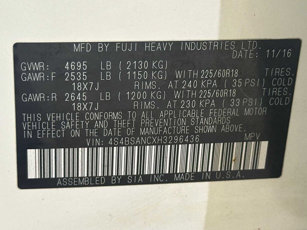 EYESIGHT & NAVIGATION & HBA & RAB & HID LIGHTS EyeSight System w/Lane Keep Assist, lead vehicle start alert (vehicle in front), cruise control on, cruise control set, follow distance setting indicator, lead vehicle indicator, lane departure and sway indicator, pre-collision indicator, ready indicator, set vehicle speed display, steering wheel indicator, warning chime, lane departure off warning light, pre-collision braking system off indicator light, system temporary off warning light, system malfunction off warning light and eyesight camera malfunction warning light, Lane Departure Warning, sway warning and warning off switch, Pre-Collision System, braking system, braking system off switch, brake assist and throttle management (engine control), Adaptive Cruise Control, High Beam Assist, POPULAR PACKAGE #5 Exterior Auto Dimming Mirror For BSD, Rear Seat Back Protector, Splash Guards, All Weather Floor Mats, Rear Bumper Cover.