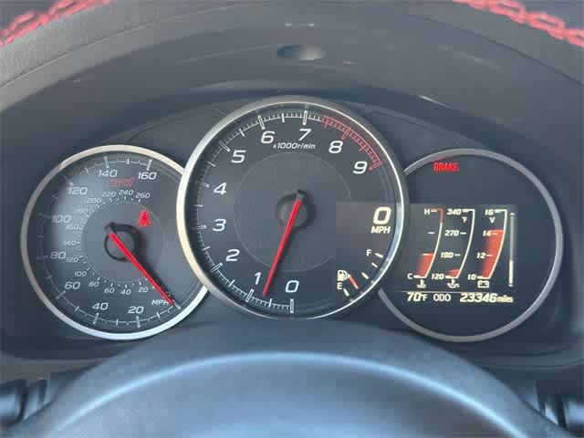 THIS VEHICLE ALSO IS EQUIPPED WITH THE FOLLOWING OPTIONS AND FEATURES: Standard Model, 4-Wheel Disc Brakes, 8 Speakers, ABS brakes, Air Conditioning, Alcantara Upholstery w/Red Leather Bolsters, Alloy wheels, AM/FM radio: SiriusXM, Apple CarPlay/Android Auto, Automatic temperature control, Brake assist, Bumpers: body-color, CD player, Delay-off headlights, Driver door bin, Driver vanity mirror, Dual front impact airbags, Dual front side impact airbags, Electronic Stability Control, Exterior Parking Camera Rear, Four wheel independent suspension, Front anti-roll bar, Front Bucket Seats, Front dual zone A/C, Front reading lights, Fully automatic headlights, Heated front seats, Illuminated entry, Leather Shift Knob, Low tire pressure warning, Navigation System, Occupant sensing airbag, Outside temperature display, Overhead airbag, Panic alarm, Passenger door bin, Passenger vanity mirror, Performance Design Front Heated Bucket Seats, Power door mirrors, Power steering, Power windows, Radio data system, Radio: Subaru STARLINK 7.0 Multimedia Nav System, Rear anti-roll bar, Rear window defroster, Remote keyless entry, Security system, Speed control, Spoiler, Steering wheel mounted audio controls, Tachometer, Telescoping steering wheel, Tilt steering wheel, Traction control, Trip computer, Variably intermittent wipers, Voltmeter, and Wheels: 18 x 7.5 Black Finish STI Alloy.