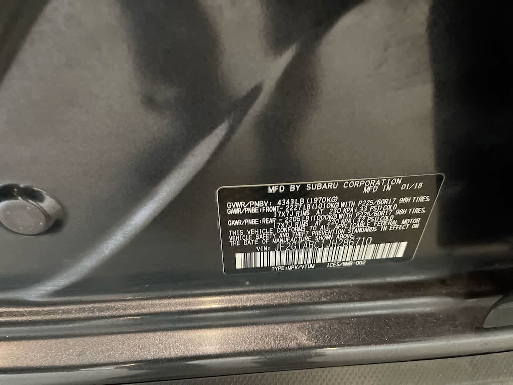 FUEL EFFICIENT 33 MPG Hwy/27 MPG City! Premium trim. Heated Seats, Brake Actuated Limited Slip Differential, Smart Device Integration, Apple CarPlay®, Onboard Communications System, iPod/MP3 Input, All Wheel Drive, Aluminum Wheels. SEE MORE!<br /><br />KEY FEATURES INCLUDE<br />All Wheel Drive, Heated Driver Seat, Back-Up Camera, iPod/MP3 Input, Onboard Communications System, Aluminum Wheels, Apple CarPlay®, Smart Device Integration, Brake Actuated Limited Slip Differential, Heated Seats Rear Spoiler, MP3 Player, Privacy Glass, Keyless Entry, Remote Trunk Release. <br /><br />OPTION PACKAGES<br />ROCKFORD FOSGATE AUDIO UPGRADE, AUTO-DIMMING MIRROR W/COMPASS & HOMELINK, AERO CROSS BAR SET. Subaru Premium with Dark Gray Metallic exterior and Black interior features a 4 Cylinder Engine with 152 HP at 6000 RPM*. <br /><br />EXPERTS ARE SAYING<br />Edmunds.com explains Responsive steering, a refined ride and plenty of ground clearance make this a surprisingly fun car to drive on both paved and dirt roads.. Great Gas Mileage: 33 MPG Hwy. <br /><br />OUR OFFERINGS<br />Dealer installs a safety and protection package to all cars to protect the vehicle and you. The charge is $1298. <br /><br />Price does not include title, license, or $499 dealer doc fees.<br />