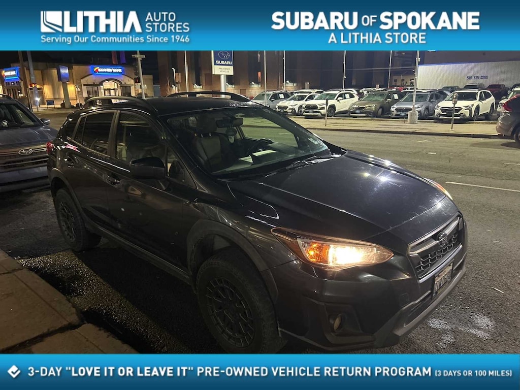 Dark Gray Metallic 2018 Subaru Crosstrek 2.0i Premium AWD Lineartronic CVT 2.0L 16V DOHC 17 x 7.0J Aluminum Alloy Wheels, 3.90 Axle Ratio, 4-Wheel Disc Brakes, 6 Speakers, ABS brakes, Air Conditioning, Alloy wheels, AM/FM radio, Apple CarPlay/Android Auto, Brake assist, Bumpers: body-color, Cloth Upholstery, Driver door bin, Driver vanity mirror, Dual front impact airbags, Dual front side impact airbags, Electronic Stability Control, Emergency communication system: STARLINK, Exterior Parking Camera Rear, Four wheel independent suspension, Front anti-roll bar, Front Bucket Seats, Front Center Armrest, Front fog lights, Front reading lights, Fully automatic headlights, Heated door mirrors, Heated Front Bucket Seats, Heated front seats, Illuminated entry, Knee airbag, Leather Shift Knob, Low tire pressure warning, Occupant sensing airbag, Outside temperature display, Overhead airbag, Overhead console, Panic alarm, Passenger door bin, Passenger vanity mirror, Power door mirrors, Power steering, Power windows, Radio data system, Radio: Subaru Starlink 6.5 Multimedia System, Rear anti-roll bar, Rear window defroster, Rear window wiper, Remote keyless entry, Roof rack: rails only, Security system, Speed control, Speed-sensing steering, Split folding rear seat, Spoiler, Standard Model, Steering wheel mounted audio controls, Subaru Starlink Smartphone Integration, Tachometer, Telescoping steering wheel, Tilt steering wheel, Traction control, Trip computer, Variably intermittent wipers.
