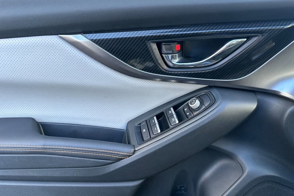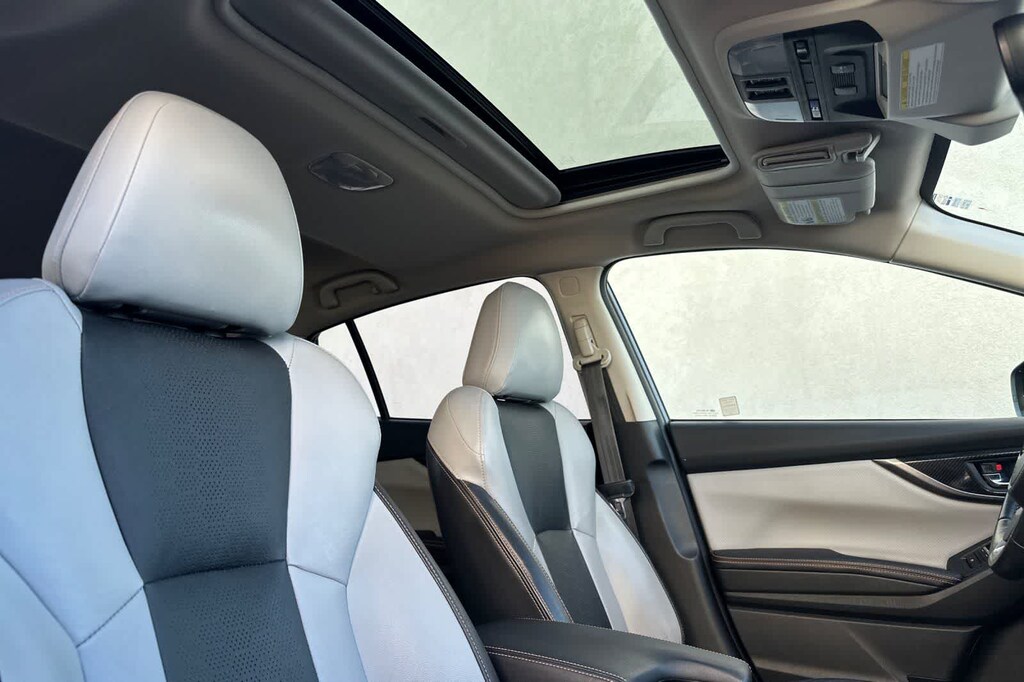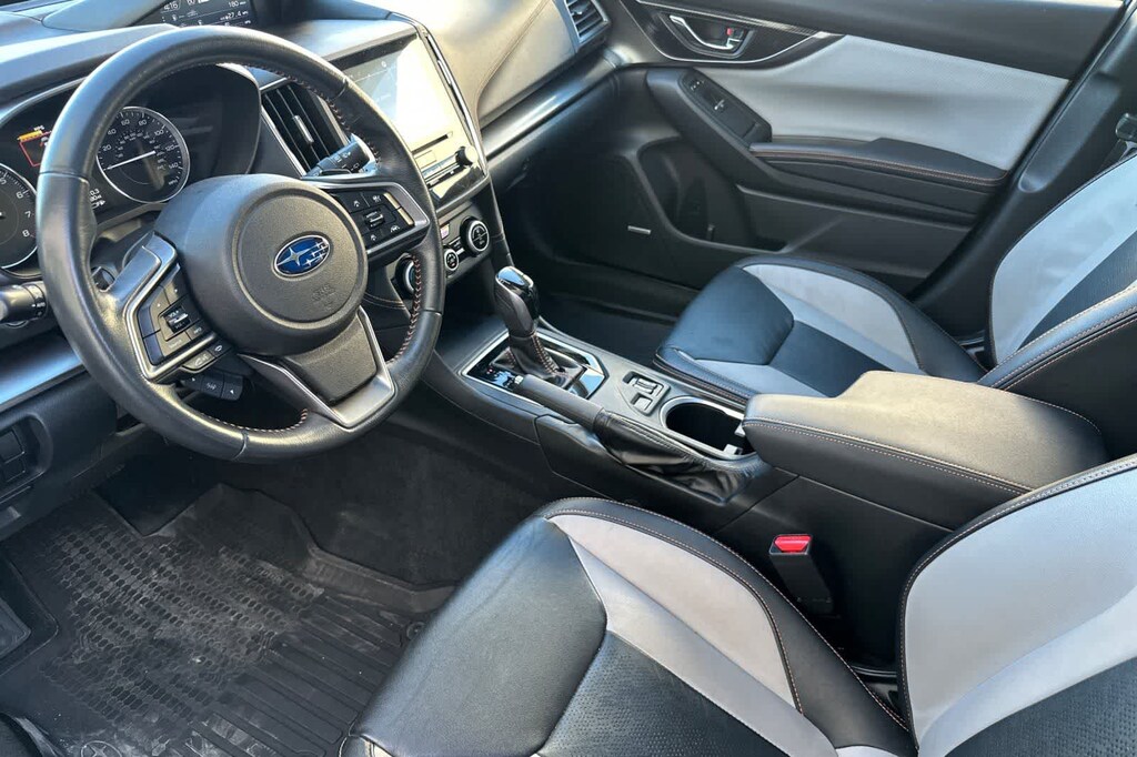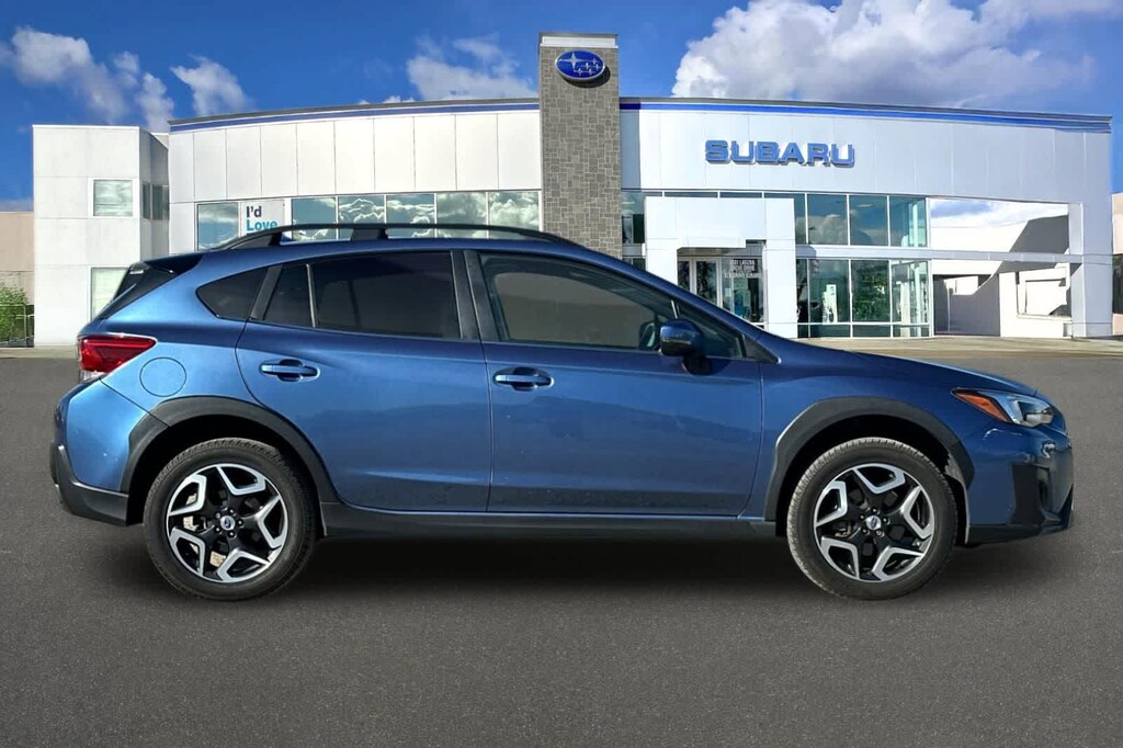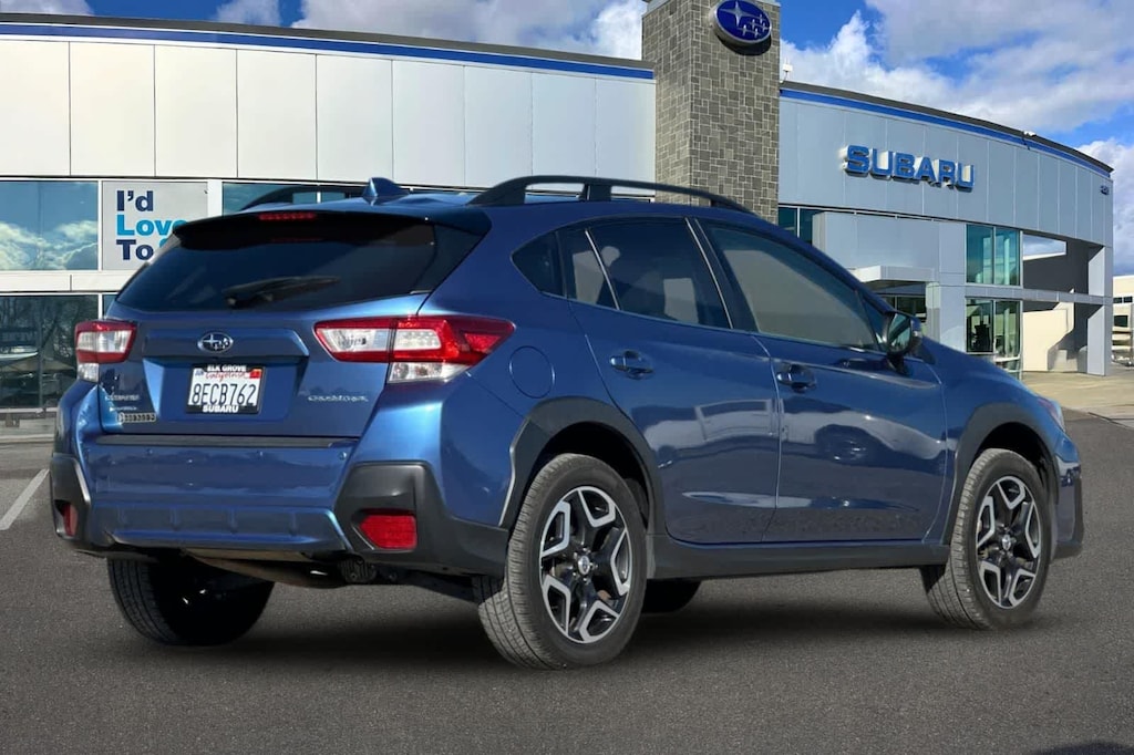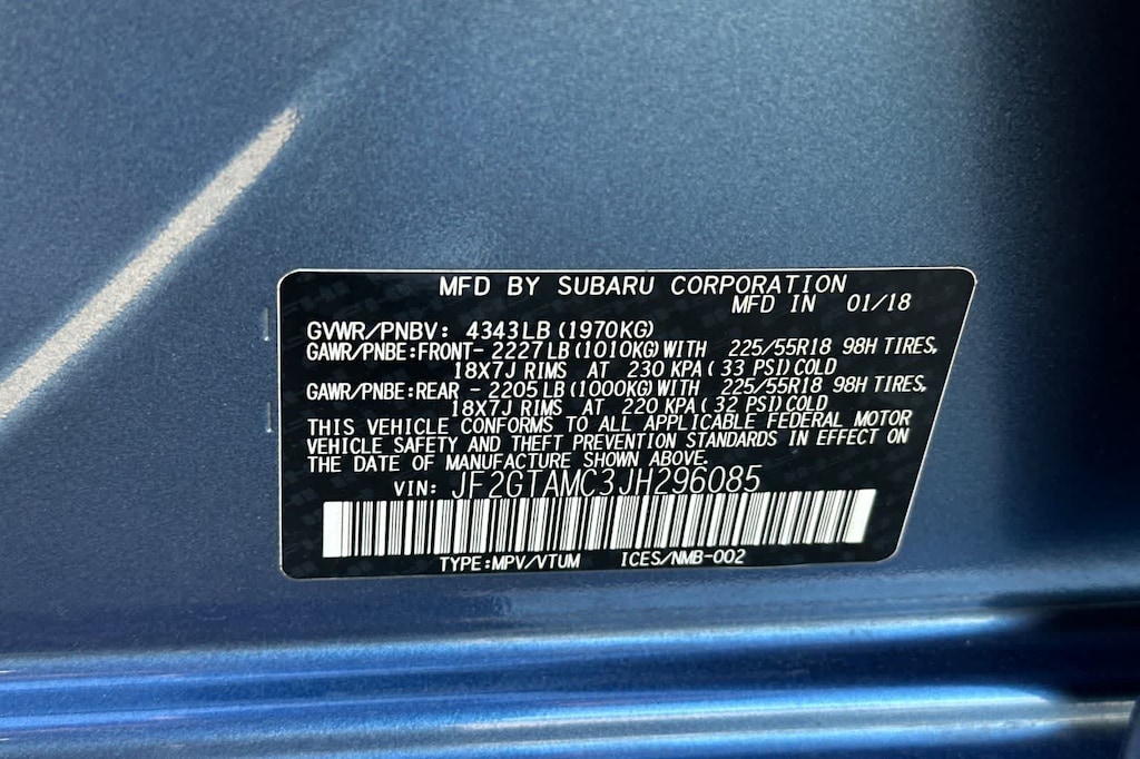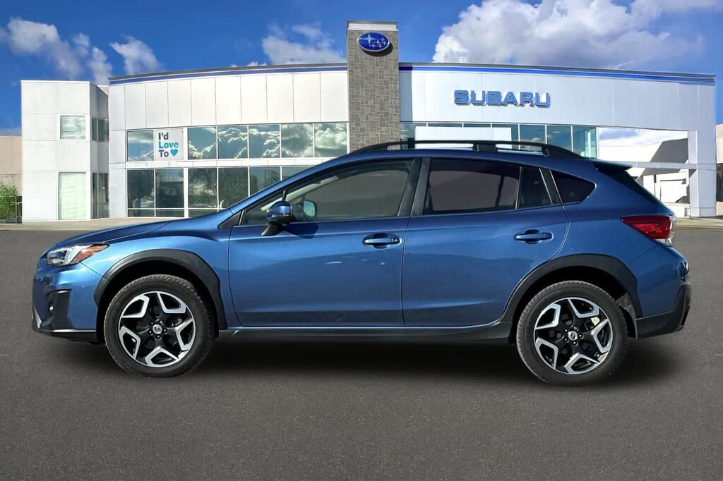 This 2018 Subaru Crosstrek 2.0i Limited is finished in the Quartz Blue Pearl exterior paint and Gray Leather interior.
