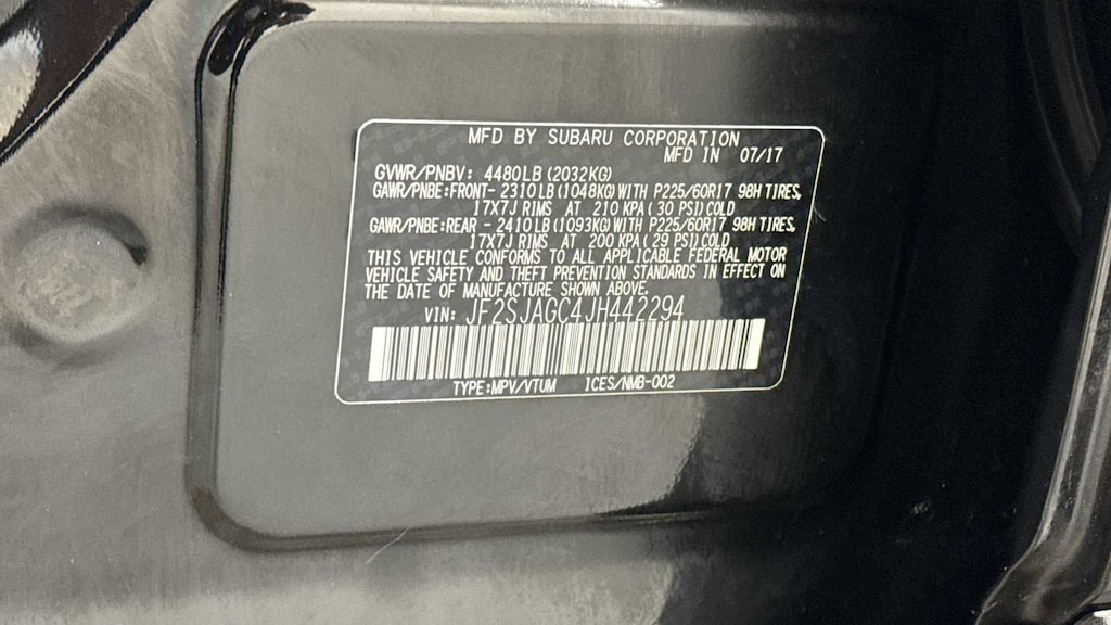 ALL-WEATHER PKG & EYESIGHT & BLIND SPOT DETECTION Heated Front Seats, Heated Exterior Mirrors, High Grade Instrument Cluster w/Color LCD Display, EyeSight System, adaptive cruise control, low speed pre-collision braking control, pre-collision following distance warning, lane keep assist and lane departure prevention, Blind Spot Detection w/Rear Cross Traffic Alert, Steering Responsive Fog Lights (SRF), Windshield Wiper De-Icer, PROTECTION PACKAGE #1 Cargo Cover - Manual Rear Gate, Not for use w/installed Compartment Cover, May be used separately, Rear Seatback Protector, All-Weather Floor Mats, Splash Guards, Rear Bumper Cover.