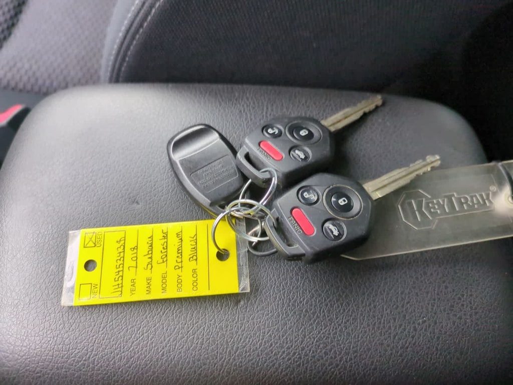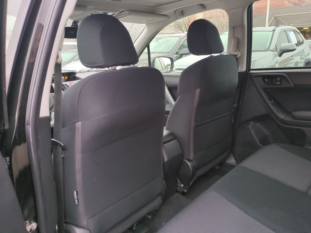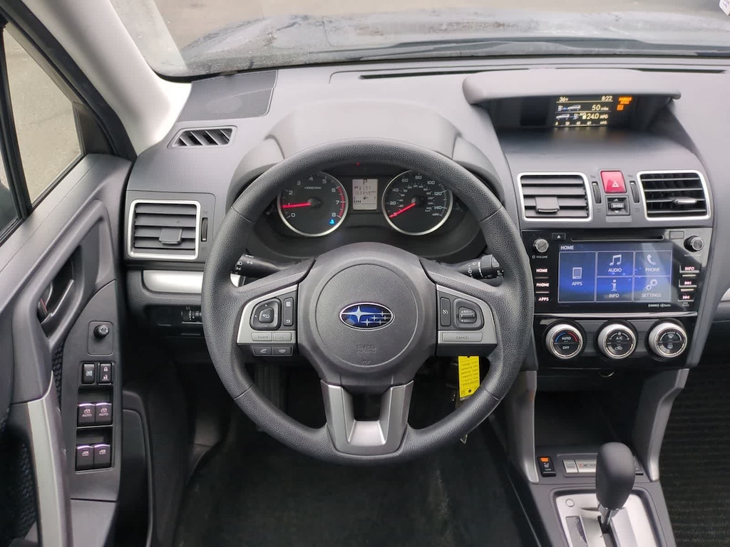 Crystal Black Silica 2018 Subaru Forester 2.5i Premium AWD Lineartronic CVT 2.5L 4-Cylinder DOHC 16V VVT 3.70 Axle Ratio, 4-Wheel Disc Brakes, 6 Speakers, ABS brakes, Air Conditioning, All-Weather Floor Mats, Alloy wheels, AM/FM radio: SiriusXM, Auto-Dimming Mirror w/Compass & HomeLink, Automatic temperature control, Brake assist, Bumpers: body-color, Cargo Cover - Manual Rear Gate, Cargo Tray, CD player, Driver door bin, Driver vanity mirror, Dual front impact airbags, Dual front side impact airbags, Electronic Stability Control, Emergency communication system: STARLINK, Exterior Parking Camera Rear, Four wheel independent suspension, Front anti-roll bar, Front Bucket Seats, Front Center Armrest, Front reading lights, Illuminated entry, Knee airbag, Low tire pressure warning, Occupant sensing airbag, Outside temperature display, Overhead airbag, Overhead console, Panic alarm, Passenger door bin, Passenger vanity mirror, Power door mirrors, Power driver seat, Power moonroof, Power steering, Power windows, Radio data system, Radio: Subaru Starlink 7.0 Multimedia Plus System, Rear anti-roll bar, Rear Bumper Cover, Rear Seat Back Cargo Net, Rear seat center armrest, Rear window defroster, Rear window wiper, Remote keyless entry, Roof rack: rails only, Security system, Speed control, Split folding rear seat, Spoiler, Steering wheel mounted audio controls, Tachometer, Telescoping steering wheel, Tilt steering wheel, Traction control, Trip computer, Variably intermittent wipers.