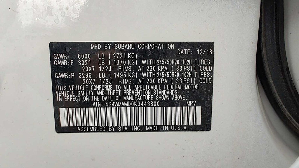 CARGO COVER Part number 65550XC00AVH, Store in rear compartment when not in use. Subaru Limited with Crystal White Pearl exterior and Warm Ivory interior features a 4 Cylinder Engine with 260 HP at 5600 RPM*.