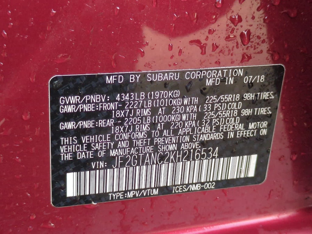 Venetian Red Pearl 2019 Subaru Crosstrek 2.0i Limited AWD Lineartronic CVT 2.0L DOHC 18 Alloy Wheels, 3.90 Axle Ratio, 4-Wheel Disc Brakes, 6 Speakers, ABS brakes, Aero Crossbar Set, Air Conditioning, All-Weather Floor Liners, Alloy wheels, AM/FM radio: SiriusXM, Auto High-beam Headlights, Auto-Dimming Mirror w/Compass & HomeLink, Automatic temperature control, Brake assist, Bumpers: body-color, CD player, Driver door bin, Driver vanity mirror, Dual front impact airbags, Dual front side impact airbags, Electronic Stability Control, Emergency communication system: STARLINK Safety and Security, Exterior Parking Camera Rear, Four wheel independent suspension, Front anti-roll bar, Front Bucket Seats, Front Center Armrest, Front fog lights, Front reading lights, Fully automatic headlights, harman/kardon Speaker System, Heated door mirrors, Heated Front Bucket Seats, Heated front seats, Illuminated entry, Knee airbag, Leather Shift Knob, Leather-Trimmed Upholstery, Low tire pressure warning, Moonroof Package w/Navigation, Navigation System, Occupant sensing airbag, Outside temperature display, Overhead airbag, Overhead console, Panic alarm, Passenger door bin, Passenger vanity mirror, Power door mirrors, Power driver seat, Power Moonroof, Power steering, Power windows, Radio data system, Radio: Subaru Starlink 8.0 Multimedia Plus System, Rear anti-roll bar, Rear Seat Back Protector, Rear seat center armrest, Rear window defroster, Rear window wiper, Remote keyless entry, Roof rack