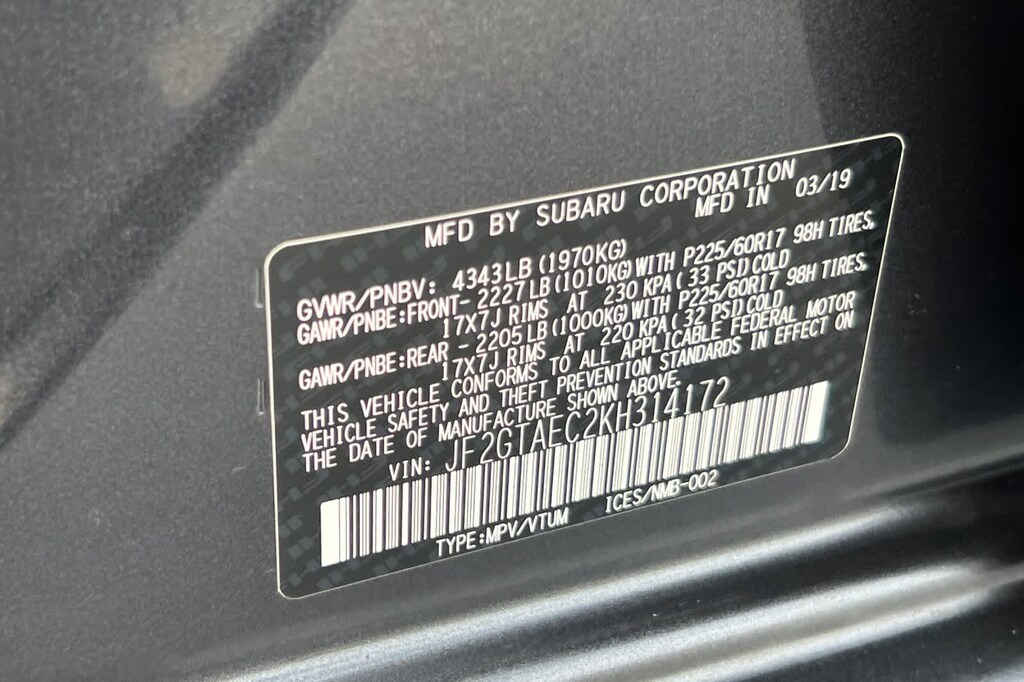 Dark Gray Metallic 2019 Subaru Crosstrek 2.0i Premium AWD Lineartronic CVT 2.0L DOHC