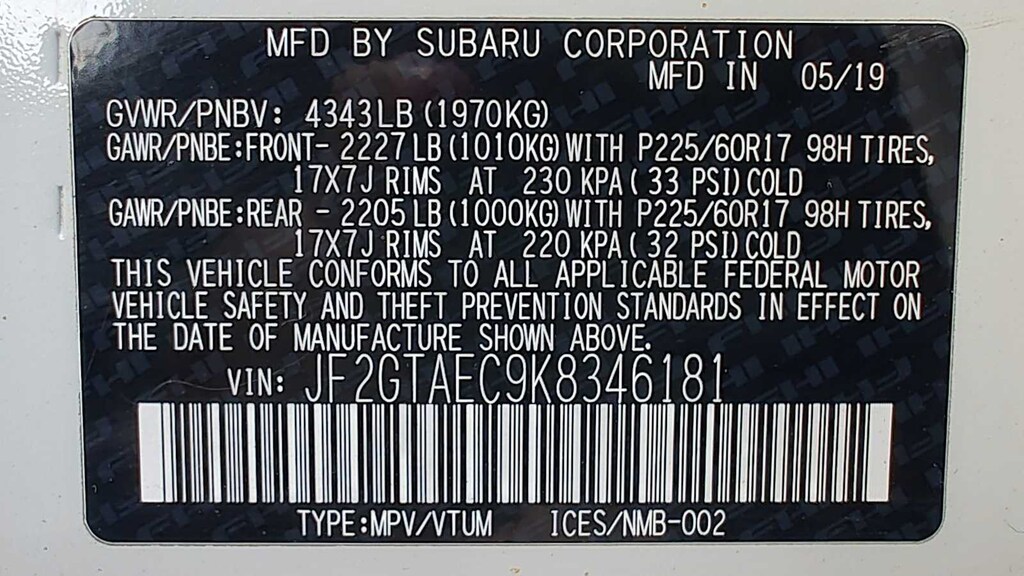 EYESIGHT SYSTEM Blind Spot Detection/Rear Cross Traffic Alert, EyeSight-System, Steering Responsive Fog Lights, Tire Pressure Monitoring System, individual wheel pressure display, Overhead Console Shower Light, High Grade Instrument Cluster w/Color LCD Display. Subaru Premium with Crystal White Pearl exterior and Black interior features a 4 Cylinder Engine with 152 HP at 6000 RPM*.