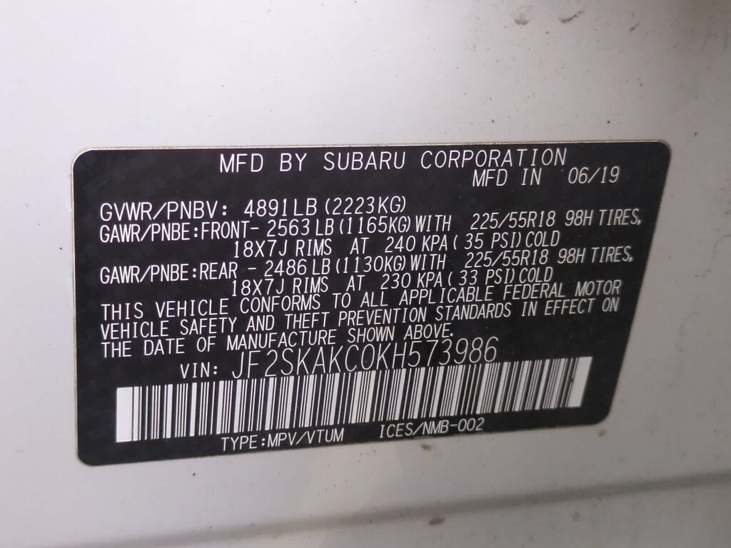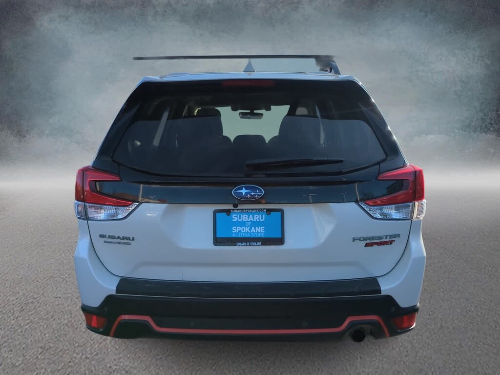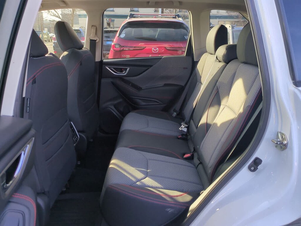 CARFAX One-Owner. Clean CARFAX. Crystal White Pearl 2019 Subaru Forester Sport AWD Lineartronic CVT 2.5L 4-Cylinder DOHC 16V VVT 3.70 Axle Ratio, 4-Wheel Disc Brakes, 6 Speakers, ABS brakes, Air Conditioning, All-Weather Floor Liners, Alloy wheels, AM/FM radio: SiriusXM, Auto High-beam Headlights, Auto-Dimming Exterior Mirror w/Approach Lighting, Auto-Dimming Mirror w/Compass & HomeLink, Automatic temperature control, Blind Spot Detection w/Rear Cross Traffic Alert, Brake assist, BSD & Reverse Auto Braking & Multimedia Plus Audio, Bumpers: body-color, Cargo Net, CD player, Driver door bin, Driver vanity mirror, Dual front impact airbags, Dual front side impact airbags, Electronic Stability Control, Emergency communication system: STARLINK Safety and Security, Exterior Parking Camera Rear, Four wheel independent suspension, Front anti-roll bar, Front Bucket Seats, Front Center Armrest, Front fog lights, Front reading lights, Fully automatic headlights, Heated door mirrors, Heated Front Bucket Seats, Heated front seats, Illuminated entry, Knee airbag, Leather Shift Knob, Low tire pressure warning, Occupant sensing airbag, Outside temperature display, Overhead airbag, Overhead console, Paddle-Shift Control Switches, Panic alarm, Passenger door bin, Passenger vanity mirror, Popular Package #2, Power door mirrors, Power driver seat, Power moonroof: Panoramic, Power steering, Power windows, Radio data system, Radio: Subaru Starlink 6.5 Multimedia Plus System, Radio: Subaru Starlink 8.0 Multimedia Plus System, Rear anti-roll bar, Rear Bumper Cover, Rear seat center armrest, Rear window defroster, Rear window wiper, Remote keyless entry, Reverse Automatic Braking System (RAB), Roof rack: rails only, Security system, Speed control, Speed-sensing steering, Split folding rear seat, Spoiler, Sport Cloth Upholstery, STARLINK/Apple CarPlay/Android Auto, Steering wheel mounted audio controls, Tachometer, Telescoping steering wheel, Tilt steering wheel, Traction control, Trip computer, Turn signal indicator mirrors, Variably intermittent wipers, Wheels: 18 x 7.0J Black Finish Aluminum Alloy.