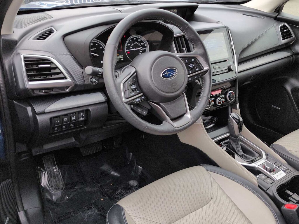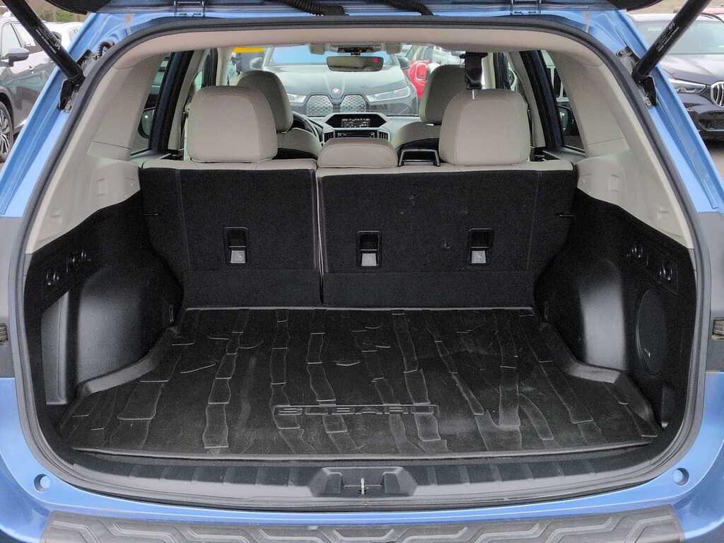 Nav System & harman kardon & Reverse Auto Braking (harman kardon 576W Amp & Speaker System, Heated Steering Wheel, Radio: Subaru Starlink 8.0 Multimedia Nav System, and Reverse Automatic Braking System (RAB)), Popular Package #3 (All-Weather Floor Liners, Auto-Dimming Exterior Mirror w/Approach Lighting, Auto-Dimming Mirror w/Compass & HomeLink, Cargo Net, Dome Light LED Upgrade, and Rear Bumper Cover), Navigation System, 3.70 Axle Ratio, 4-Wheel Disc Brakes, 6 Speakers, ABS brakes, Air Conditioning, Alloy wheels, AM/FM radio: SiriusXM, Auto High-beam Headlights, Automatic temperature control, Brake assist, Bumpers: body-color, CD player, Driver door bin, Driver vanity mirror, Dual front impact airbags, Dual front side impact airbags, Electronic Stability Control, Emergency communication system: STARLINK Safety and Security, Exterior Parking Camera Rear, Four wheel independent suspension, Front anti-roll bar, Front Bucket Seats, Front Center Armrest, Front dual zone A/C, Front fog lights, Front reading lights, Fully automatic headlights, Heated door mirrors, Heated Front Bucket Seats, Heated front seats, Illuminated entry, Knee airbag, Leather Shift Knob, Low tire pressure warning, Occupant sensing airbag, Outside temperature display, Overhead airbag, Overhead console, Panic alarm, Passenger door bin, Passenger vanity mirror, Perforated Leather-Trimmed Upholstery, Power door mirrors, Power driver seat, Power Liftgate, Power moonroof: Panoramic, Power steering, Power windows, Radio data system, Radio: Subaru Starlink 8.0 Multimedia Plus System, Rear anti-roll bar, Rear seat center armrest, Rear window defroster, Rear window wiper, Remote keyless entry, Roof rack: rails only, Security system, Speed control, Speed-sensing steering, Split folding rear seat, Spoiler, STARLINK/Apple CarPlay/Android Auto, Steering wheel mounted audio controls, Tachometer, Telescoping steering wheel, Tilt steering wheel, Traction control, Trip computer, Turn signal indicator mirrors, Variably intermittent wipers, and Wheels: 18 x 7.0J Black Machine Finish Alum Alloy.