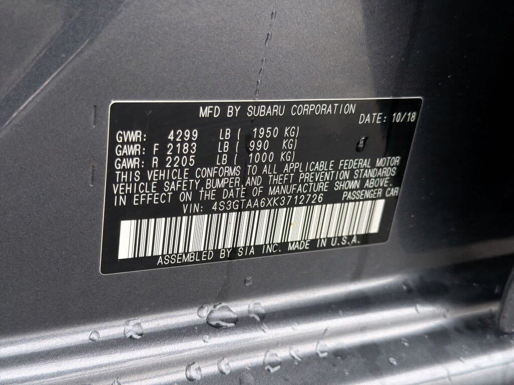 Magnetite Gray Metallic 2019 Subaru Impreza 2.0i AWD CVT Lineartronic 2.0L DOHC CLEAN CAR FAX, ONE OWNER.