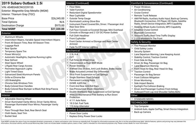 Whether you're embarking on a family adventure, commuting to the office, or simply enjoying the open road, this 2019 Subaru Outback 2.5i is the perfect companion. With its versatile capabilities, impressive efficiency, and comprehensive suite of features, this Outback is poised to exceed your expectations. Experience the difference for yourself - schedule a test drive today and discover the joy of Subaru ownership.