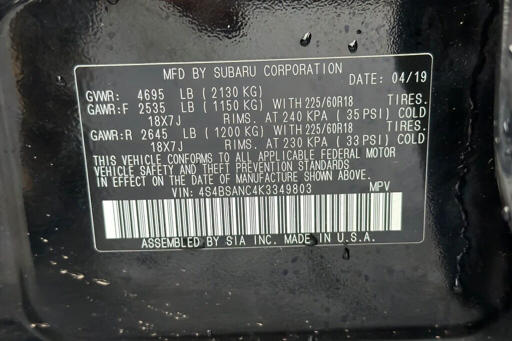 Crystal Black Silica 2019 Subaru Outback 2.5i Limited AWD CVT Lineartronic 2.5L 4-Cylinder DOHC 16V