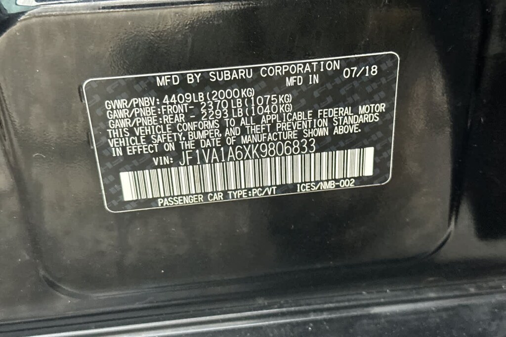 POPULAR PACKAGE #1 Rear Bumper Applique, Center Armrest Extension - Black, Alloy Wheel Locks, Auto-Dimming Mirror w/Compass & HomeLink, Cargo Tray. 2019 Subaru WRX with Crystal Black Silica exterior and Carbon Black interior features a 4 Cylinder Engine with 268 HP at 5600 RPM*.