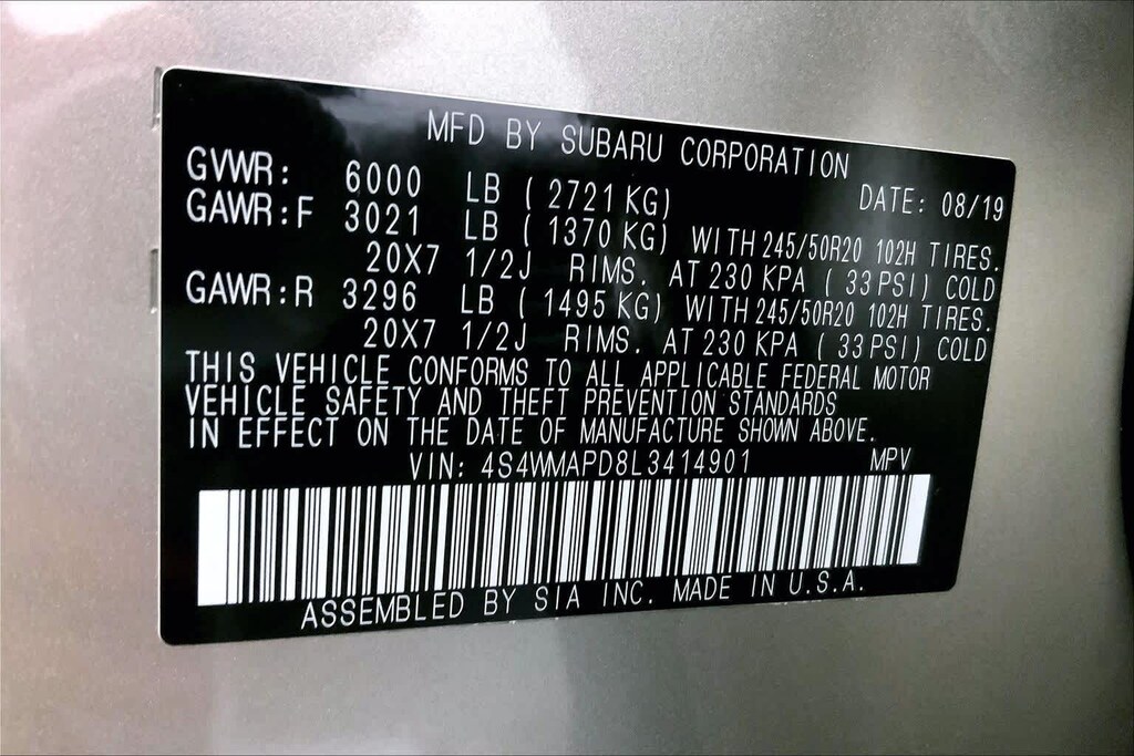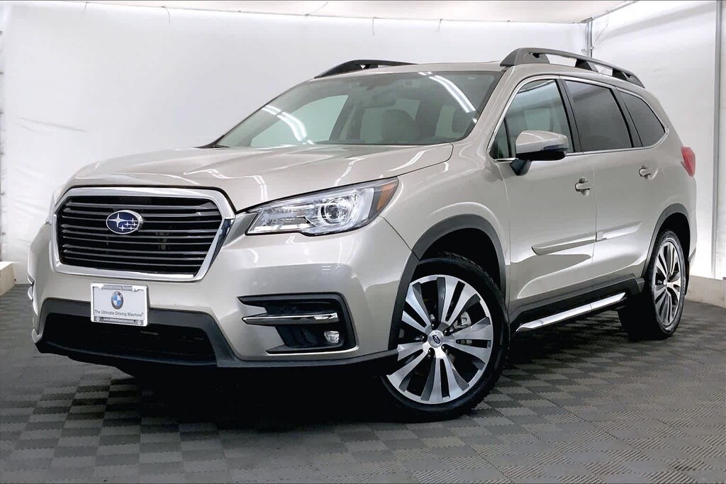 CARFAX One-Owner. Clean CARFAX. Tungsten Metallic 2020 Subaru Ascent Limited AWD Lineartronic CVT 2.4L DOHC 3rd row seats: bench, 4-Wheel Disc Brakes, 6 Speakers, ABS brakes, Air Conditioning, All-Weather Floor Liners, Alloy wheels, AM/FM radio: SiriusXM, Auto High-beam Headlights, Auto-Dimming Exterior Mirror w/Approach Light, Auto-dimming Rear-View mirror, Automatic temperature control, Axle Ratio: 4.44, Brake assist, Bumpers: body-color, Cargo Area Cover, Cargo Tray, CD player, Compass, Delay-off headlights, Driver door bin, Driver vanity mirror, Dual front impact airbags, Dual front side impact airbags, Dual Glass Panoramic Power Moonroof, Electronic Stability Control, Emergency communication system: STARLINK Safety and Security (Subscription Required), Exterior Parking Camera Rear, Four wheel independent suspension, Front anti-roll bar, Front Bucket Seats, Front Center Armrest, Front dual zone A/C, Front fog lights, Front reading lights, Fully automatic headlights, Garage door transmitter: HomeLink, Heated door mirrors, Heated Front Bucket Seats, Heated front seats, Heated rear seats, Heated steering wheel, Illuminated entry, Knee airbag, Low tire pressure warning, Map & Reading Lights LED Upgrade - 6 Bulb Kit, Memory seat, Occupant sensing airbag, Outside temperature display, Overhead airbag, Overhead console, Panic alarm, Passenger door bin, Passenger vanity mirror, Perforated Leather-Trimmed Upholstery, Popular Package #2A, Power door mirrors, Power driver seat, Power Liftgate, Power passenger seat, Power steering, Power windows, Radio data system, Radio: Subaru STARLINK 8.0 Multimedia Nav System, Radio: Subaru STARLINK 8.0 Multimedia Plus System, Rear air conditioning, Rear anti-roll bar, Rear Bumper Cover, Rear reading lights, Rear Seatback Protector, Rear window defroster, Rear window wiper, Reclining 3rd row seat, Remote keyless entry, Security system, Speed control, Splash Guards, Split folding rear seat, Spoiler, STARLINK/Apple CarPlay/Android Auto, Steering wheel mounted audio controls, Tachometer, Technology Package, Telescoping steering wheel, Tilt steering wheel, Traction control, Trip computer, Turn signal indicator mirrors, Variably intermittent wipers, Wheels: 20 Dk Gray Aluminum Alloy w/Machine Finish.